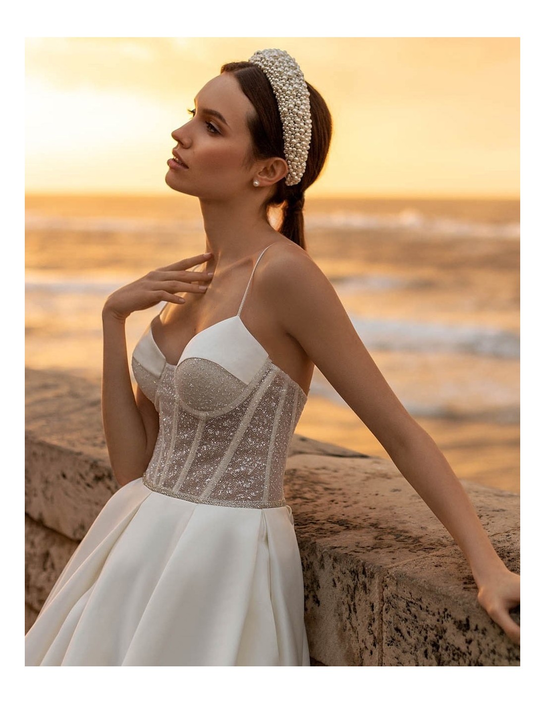- Adorned with pearls.
