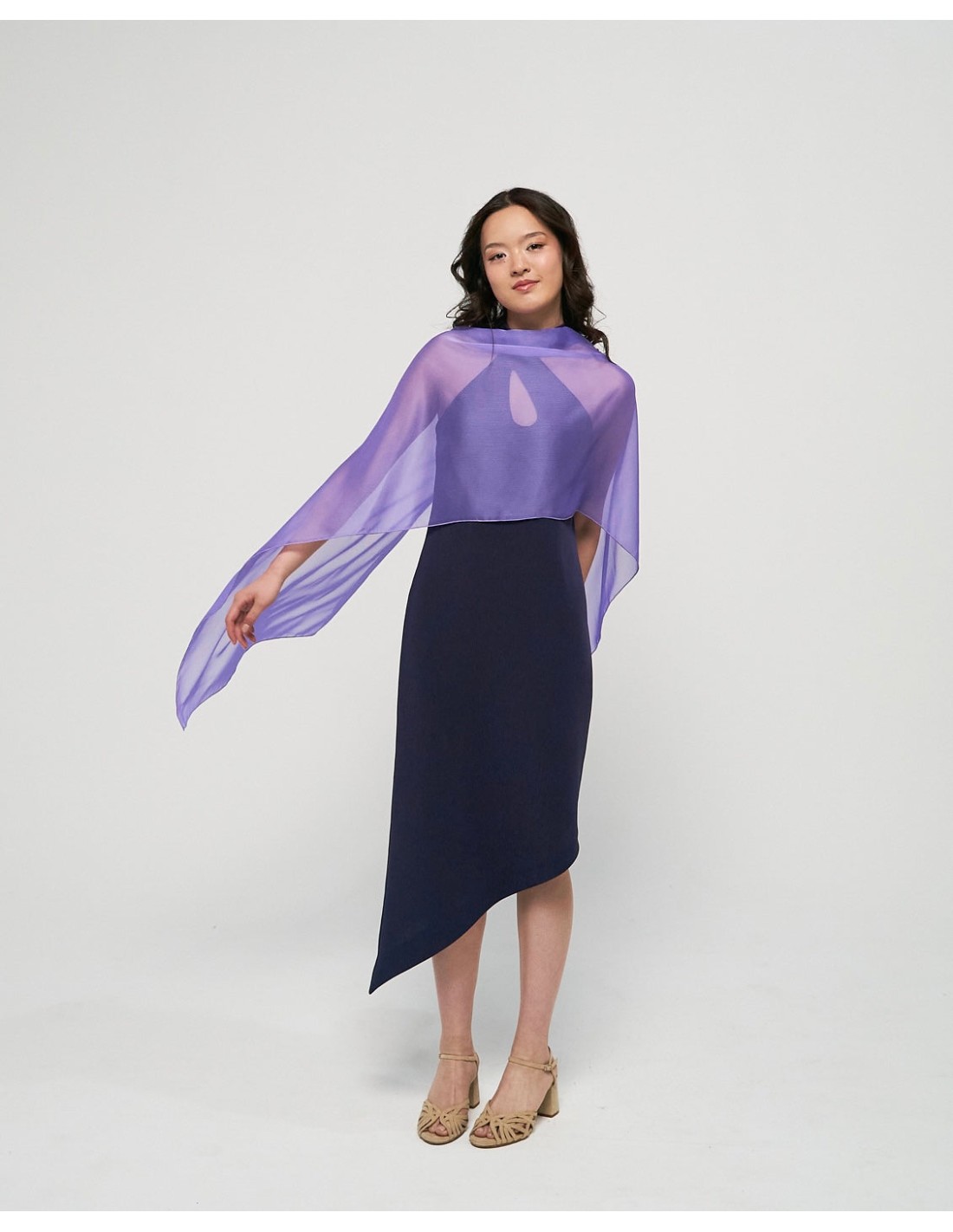 - Long chiffon cape for wedding guests in lavender
