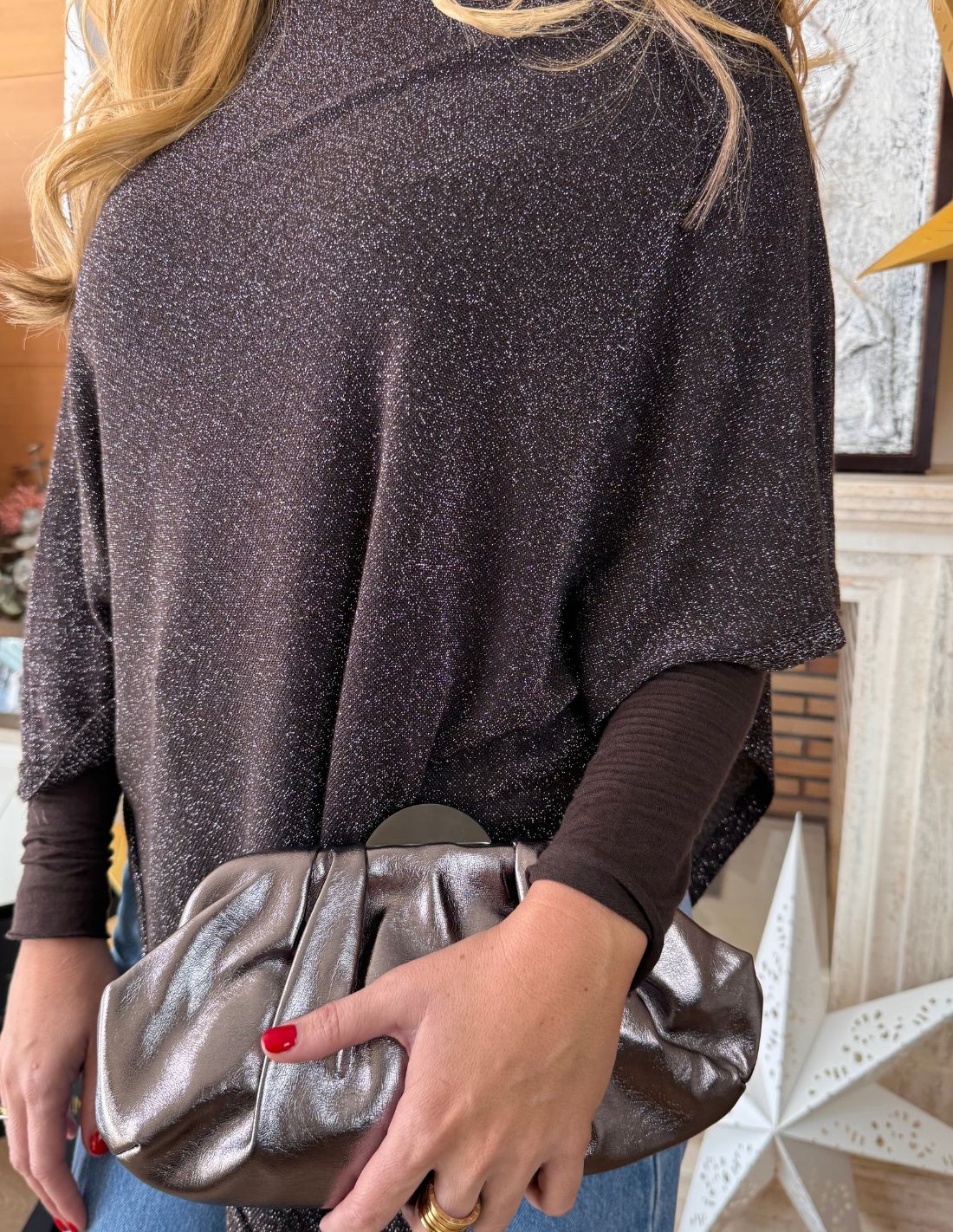Brown poncho with glitter