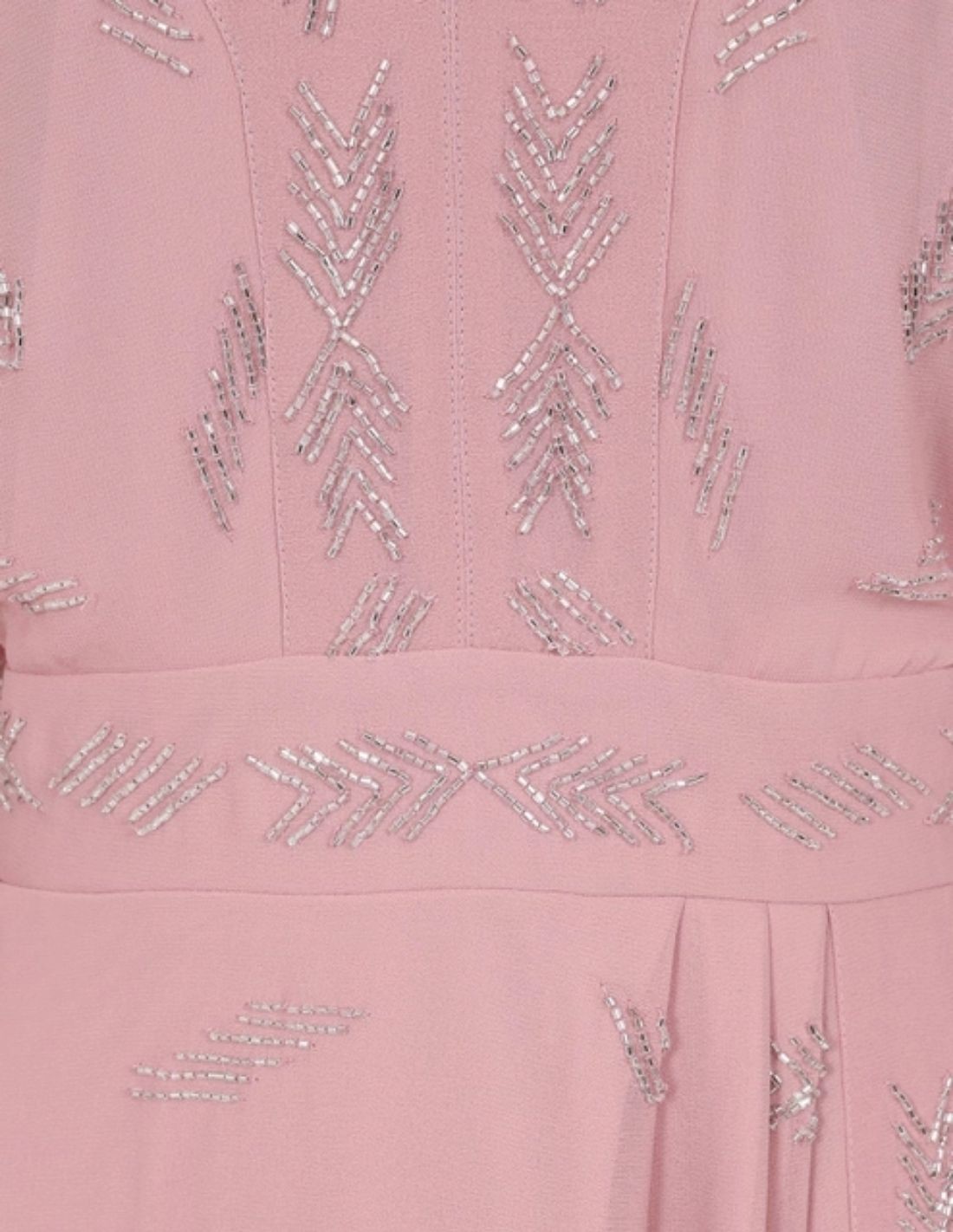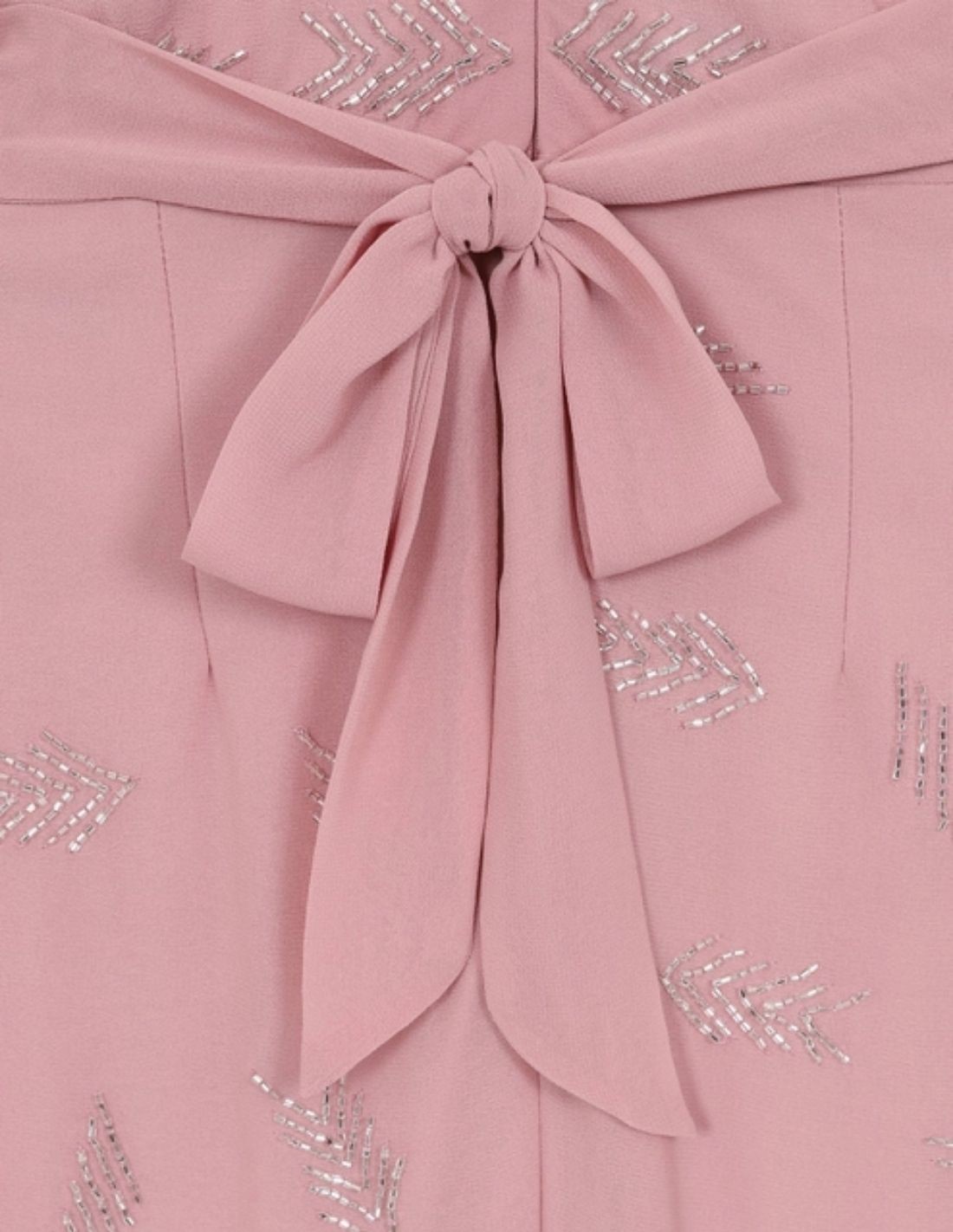 This sophisticated guest dress is made from exquisite blush pink crepe combined with silver sequins.