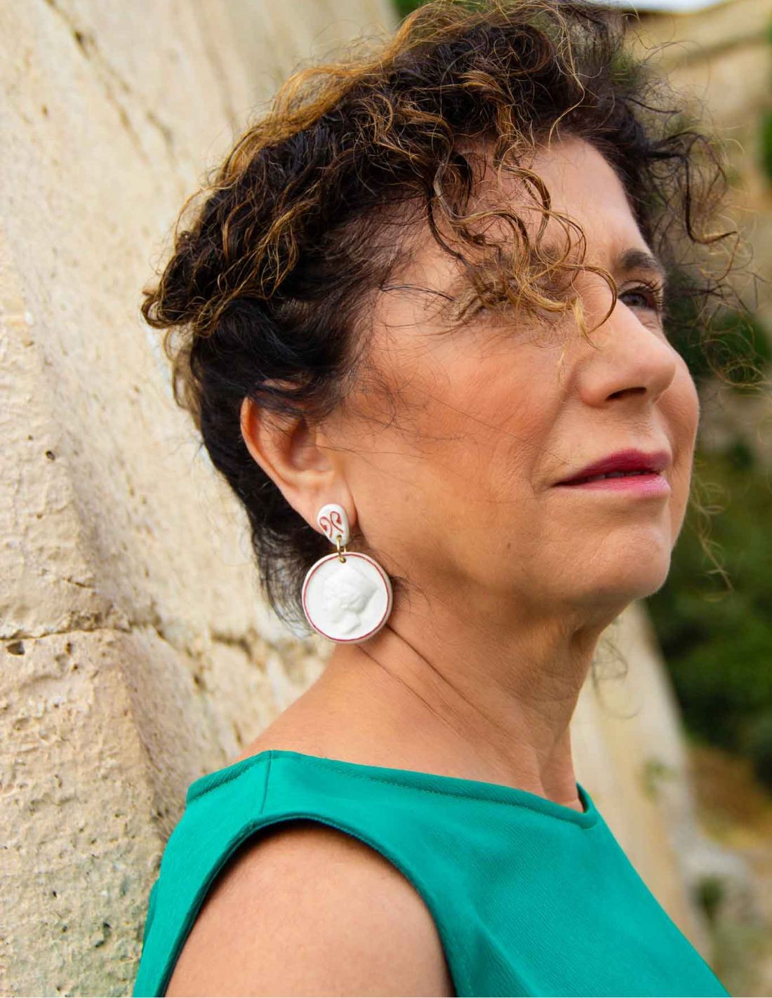 Painted porcelain medal long earrings
