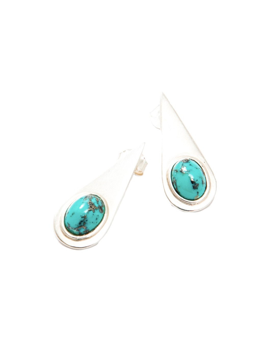 Teardrop-shaped silver earrings with turquoise stone by Eme Jewels at INVITADISIMA.