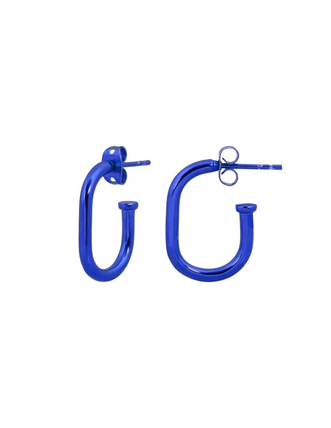 Highlight your simple look with these Fluor Blue Hoops. With a metallic design finished with a fluorine electrolytic bath, with butterfly closure system and hypoallergenic. Perfect for adding a little life and color to your outfits.
