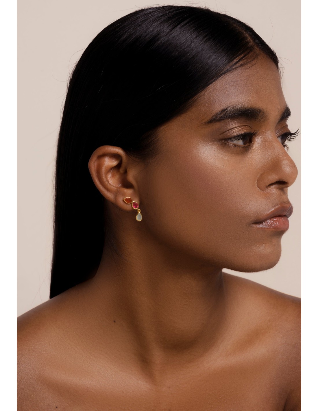 This earcuff style earring will become your favorite piece of jewelry. Made with multicolored stones, which will give that touch of color to your outfits. Undoubtedly, an indispensable and original piece to combine with your simplest looks, both casual and formal.