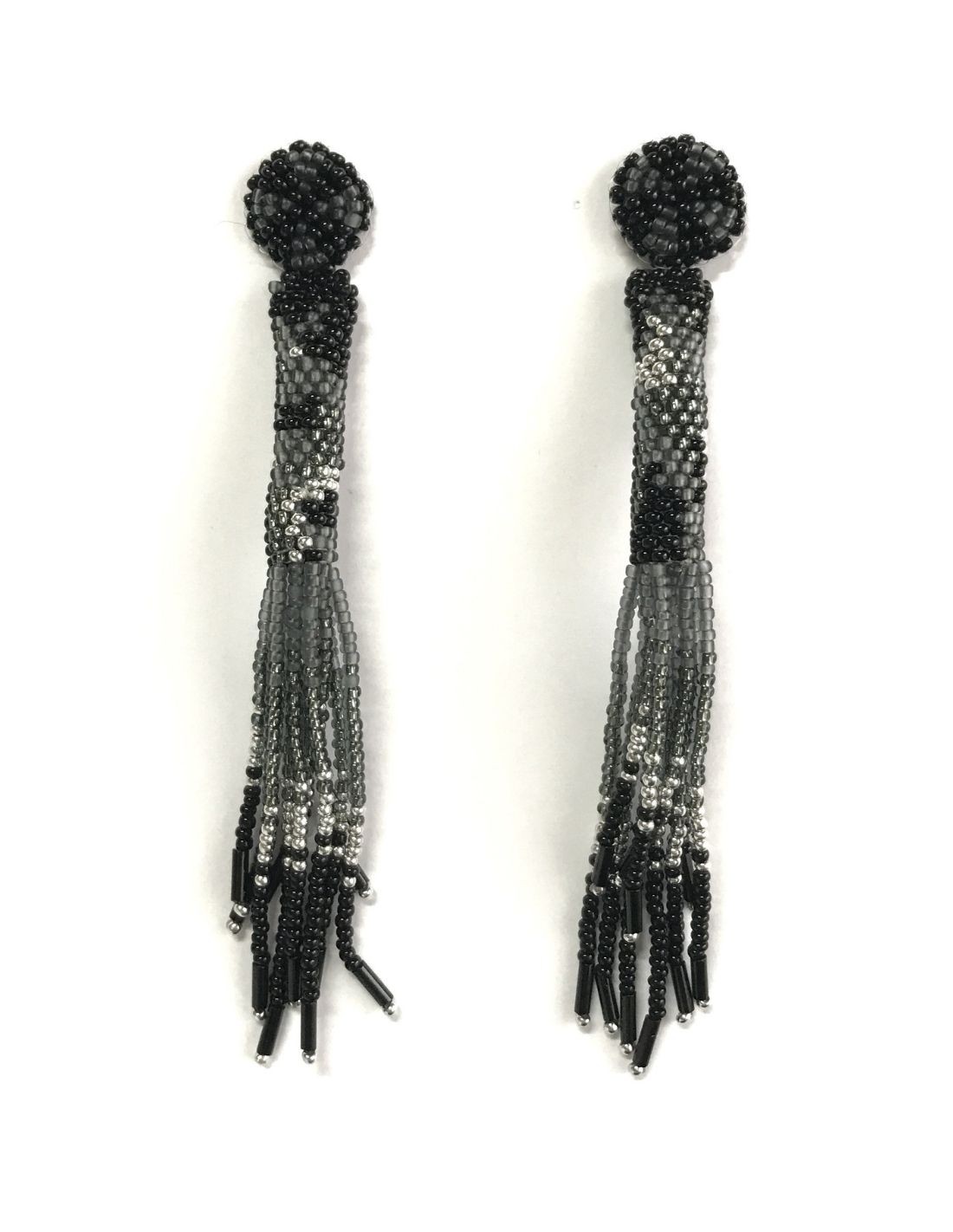 Long fringed beaded party earrings with bangs