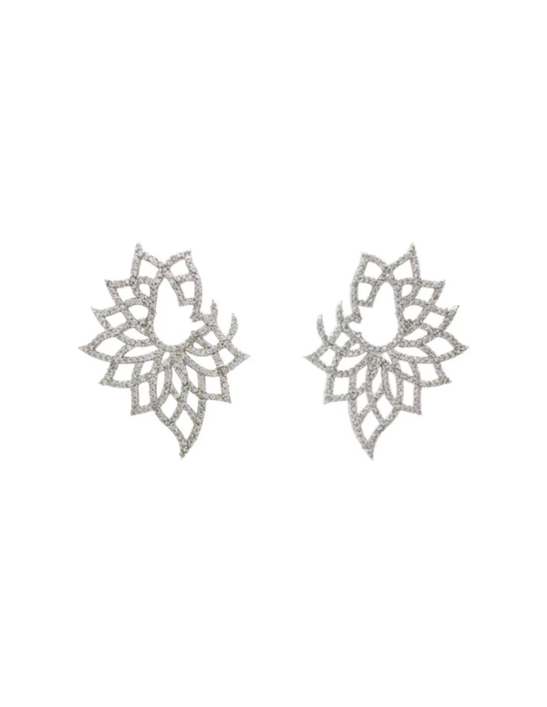 Elegant and luminous, these flower-patterned earrings adorned with finely set zirconias reflect the light with a delicate and sophisticated sparkle. Made of silver-plated brass, they offer a polished and durable finish that enhances their timeless design. Their lightweight structure makes them the ideal accessory for any occasion, from a casual look to a special event.