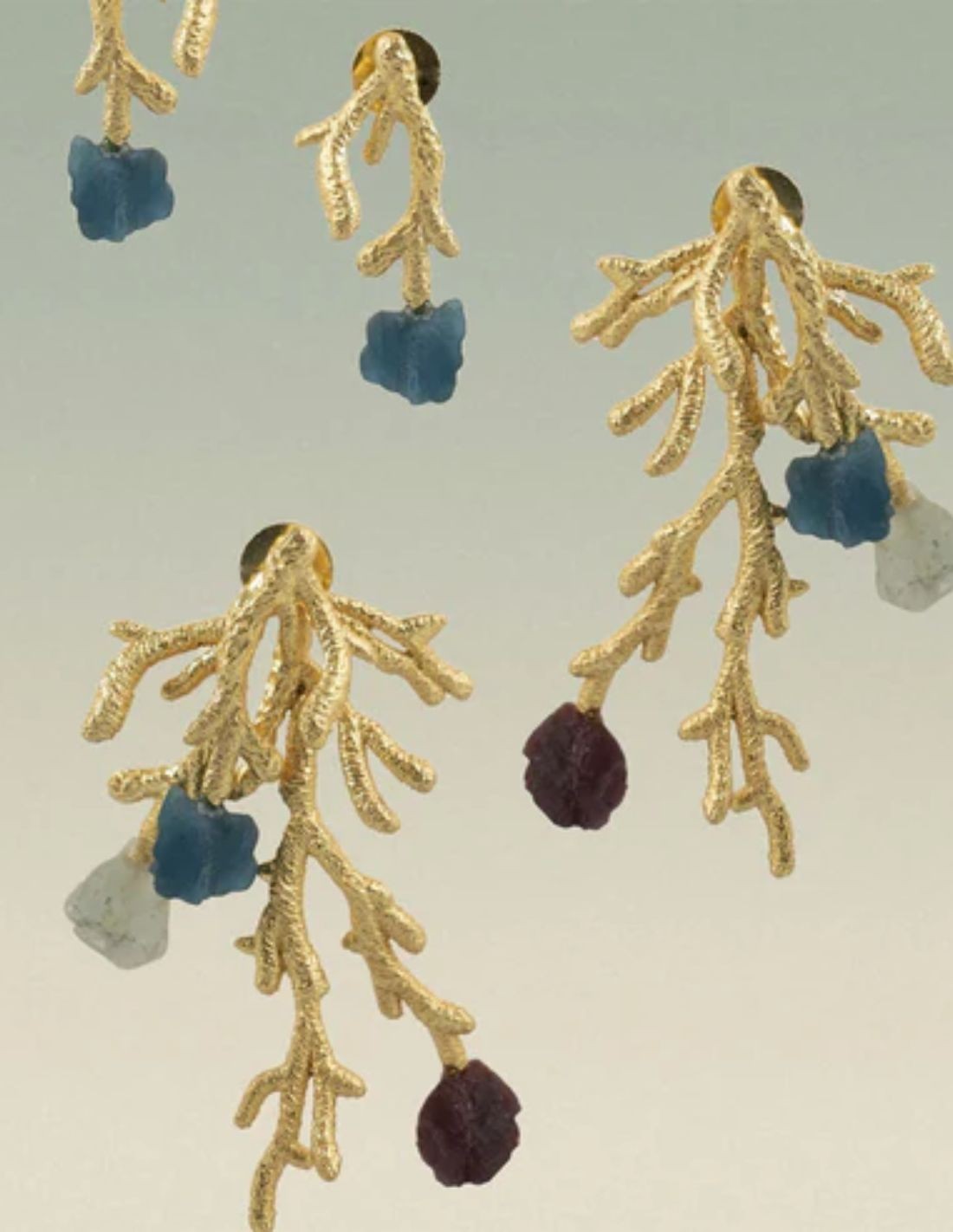 Detachable earrings with coral shape and stones at the ends