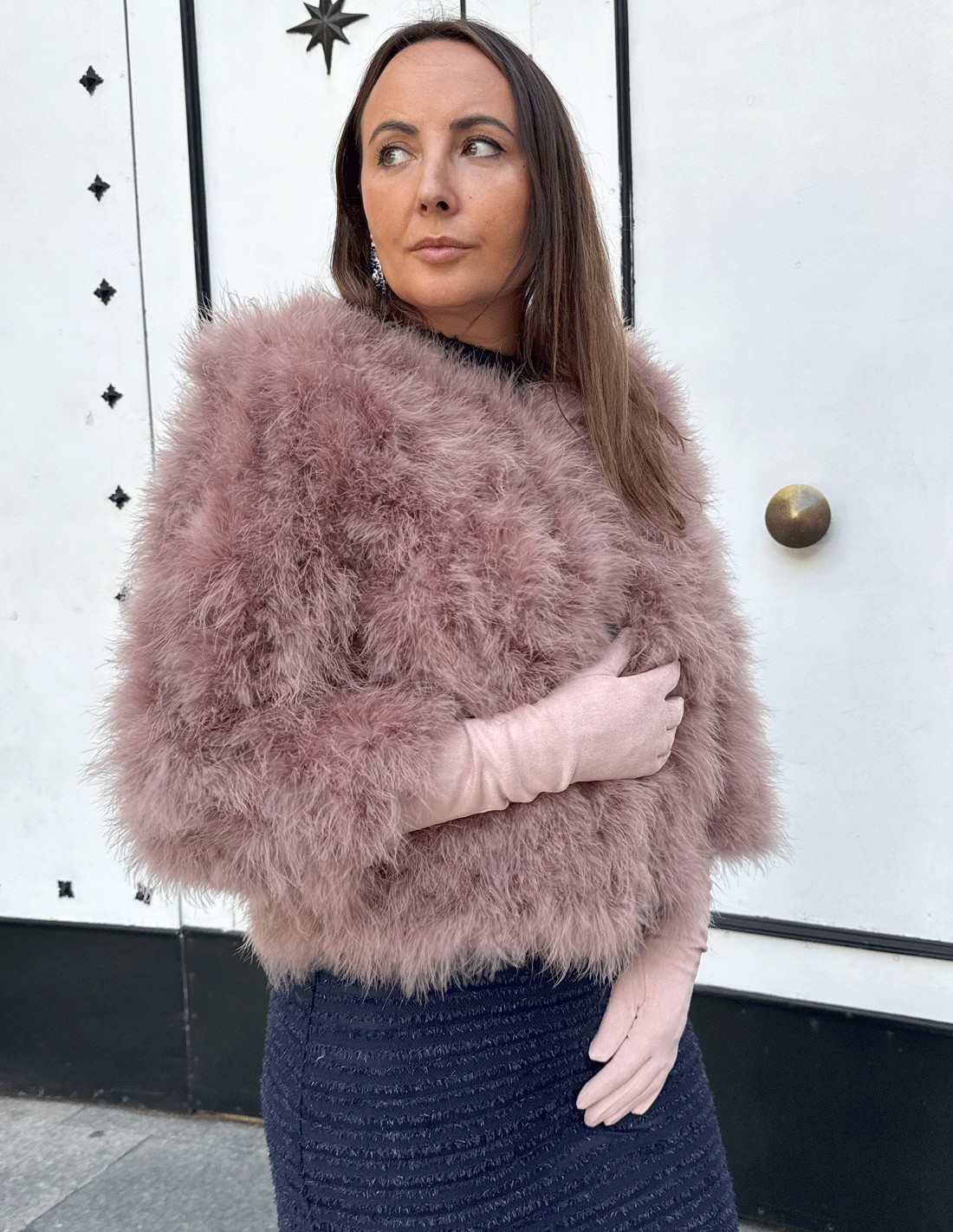 Their delicate pale pink tone makes them a versatile piece that combines easily with party dresses, capes or stoles, providing a romantic and distinguished air. They are ideal for weddings, autumn and winter events and special occasions, as in addition to stylize the silhouette, they provide extra warmth without losing lightness.