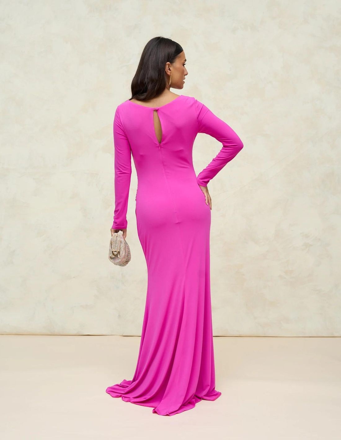 Long pink party dress for guests.