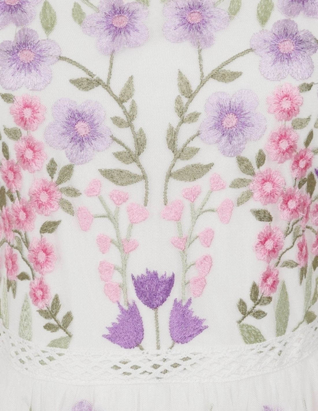 Long white tulle dress embroidered with flowers for special guests and events such as baptisms or communions.