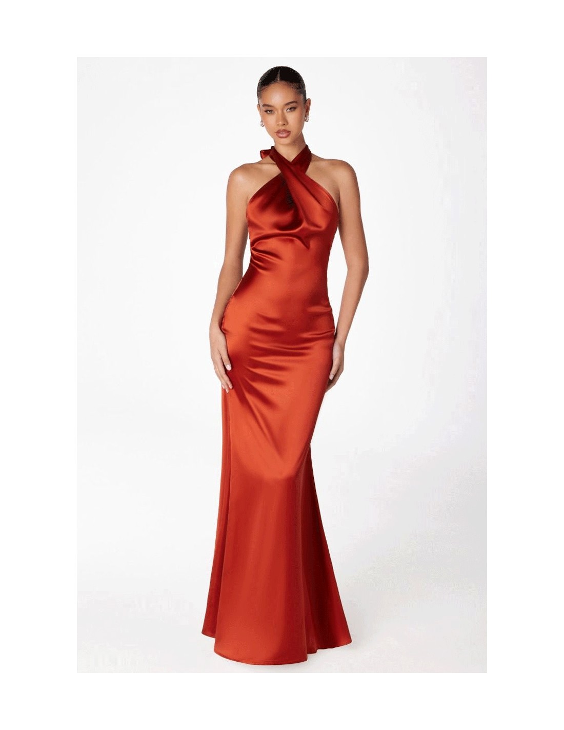 Dazzle at your next event in this satin halter halter back ball gown, designed to enhance your elegance and sophistication. With a flattering halter neckline and a dramatic open back, this dress is the ideal choice for wedding guests, bridesmaids or any special occasion where you want to stand out.