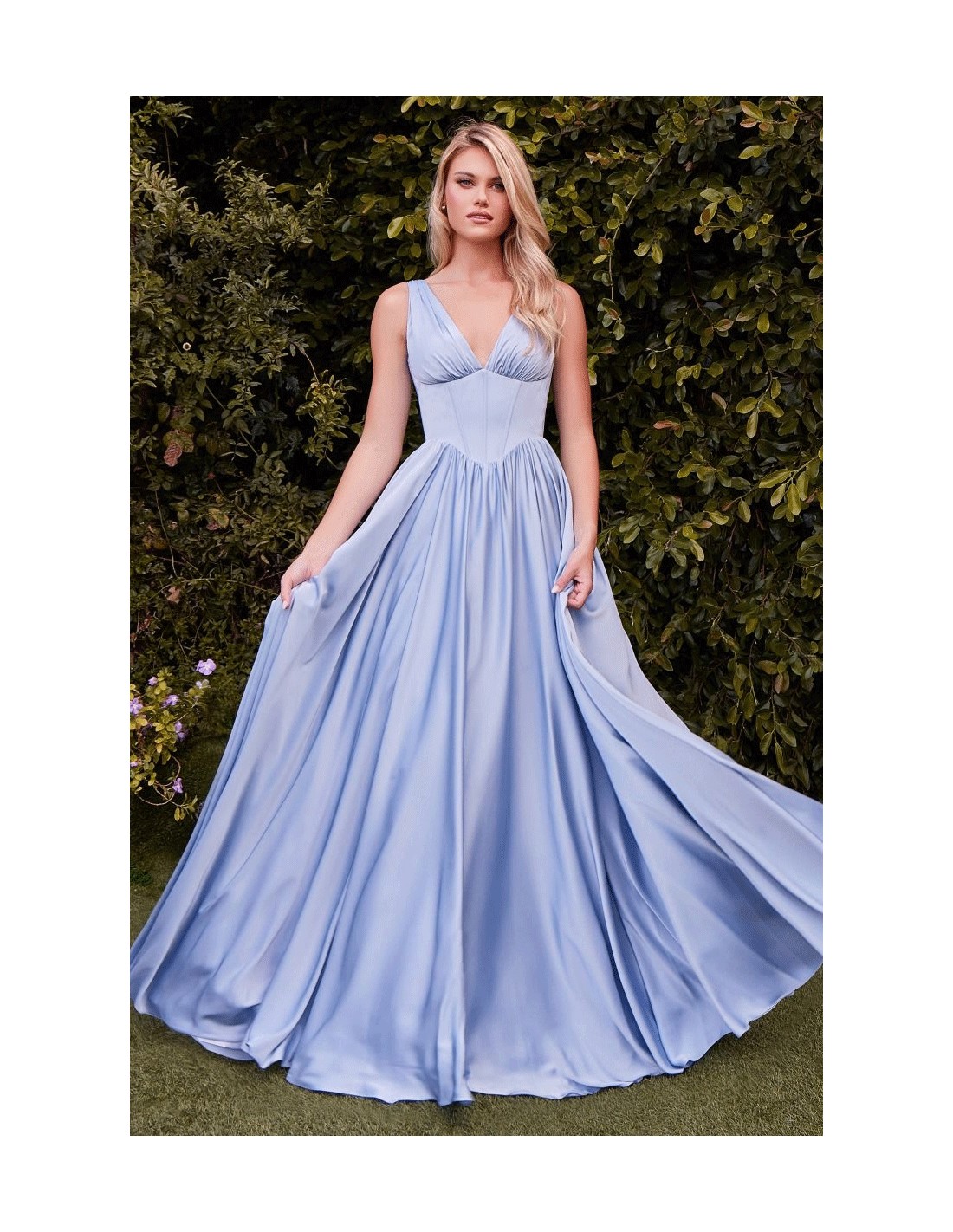 Discover the perfect satin long gown for wedding guests. Crafted in soft satin, this A-line design combines elegance and comfort. Its V-neckline with delicate straps and structured pleated bodice with boning enhance your figure, while the lace corset back ensures an impeccable fit. Ideal for bridesmaids, formal events or even prom parties, this dress is synonymous with sophistication.