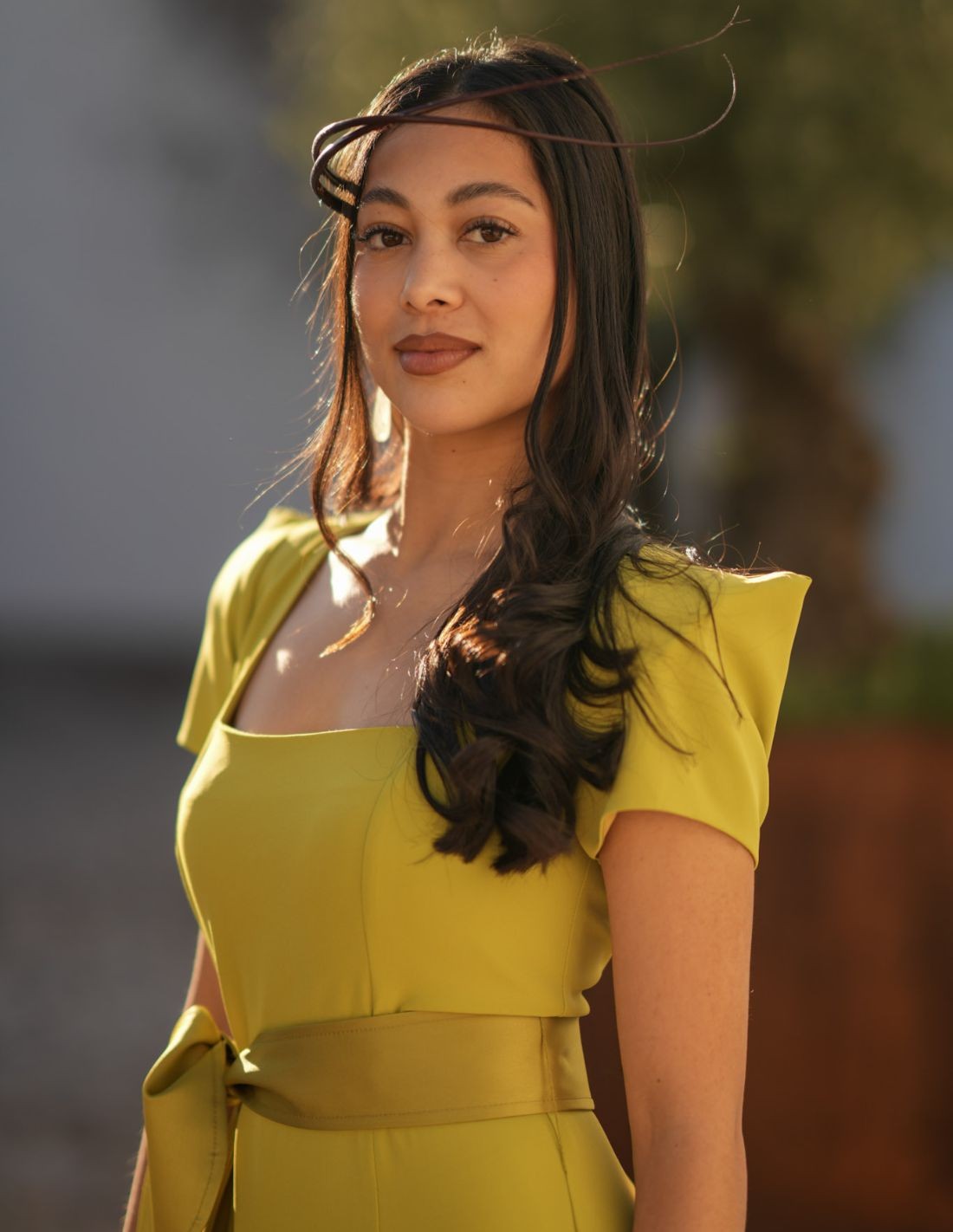 A very special design for spring events. This long dress in pistachio color is perfect for evening weddings or graduation. Made with square neckline, very flattering and short sleeves. At the waist, it incorporates a sash to adjust it and enhance the silhouette. The part of the skirt, has a flowing fall with a ruffle at the bottom. An ideal color and design for this season with which you will shine.