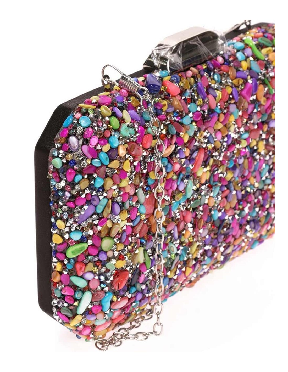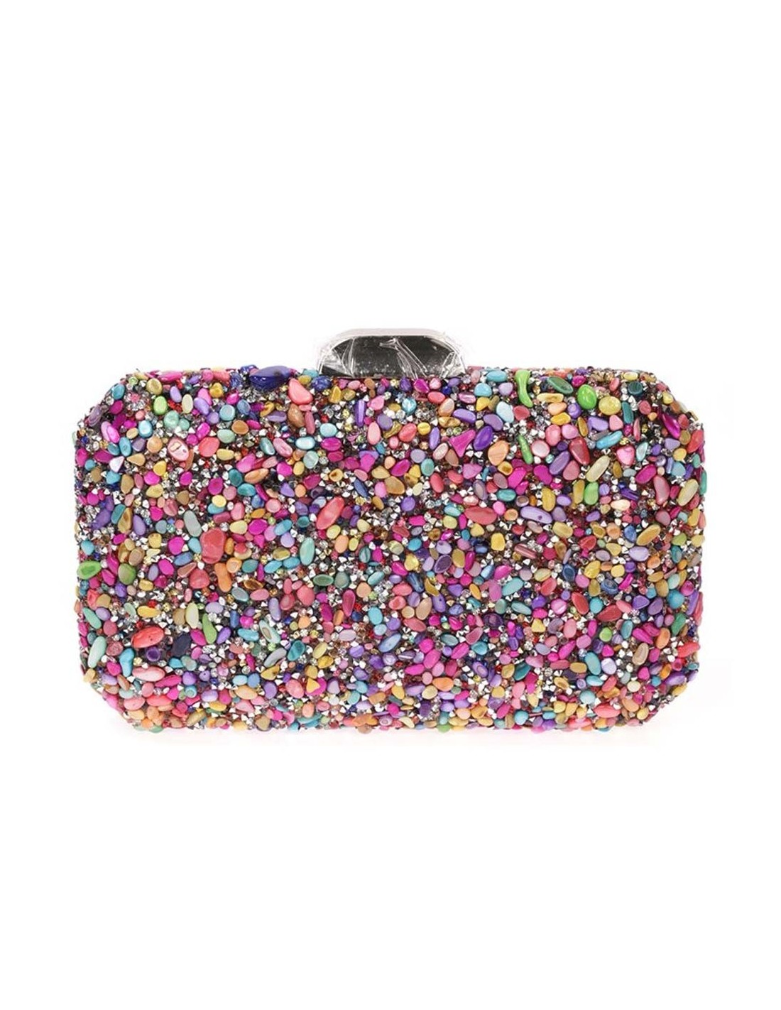 Multicolor rhinestone clutch bag for parties and events.