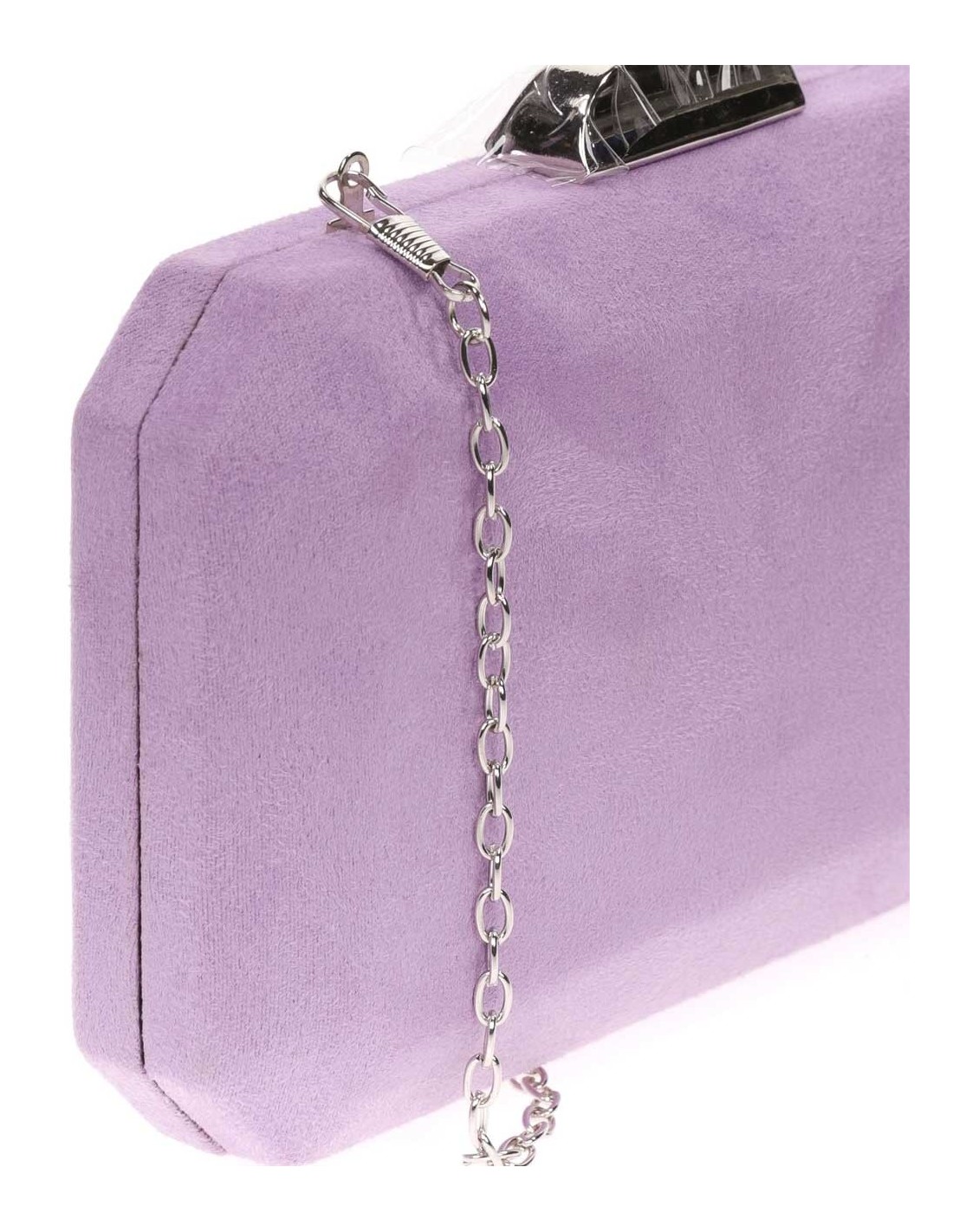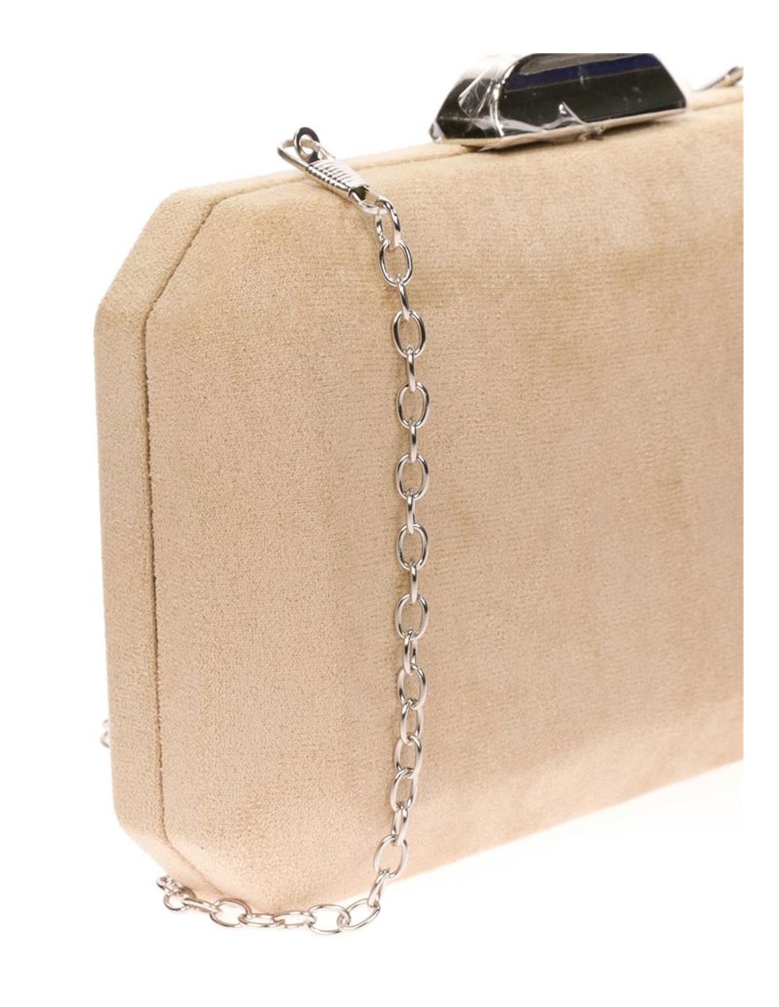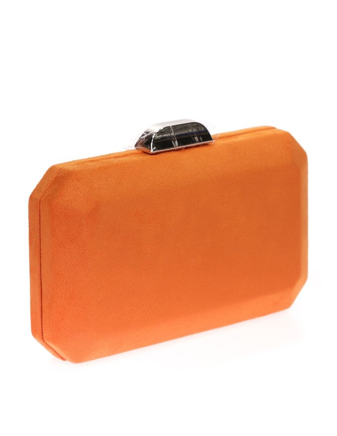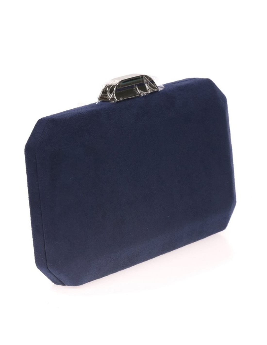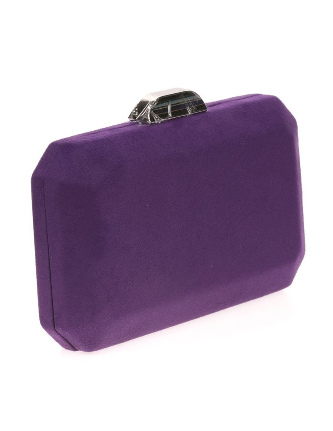 Suede octogonal clutch bag with metallic clasp
