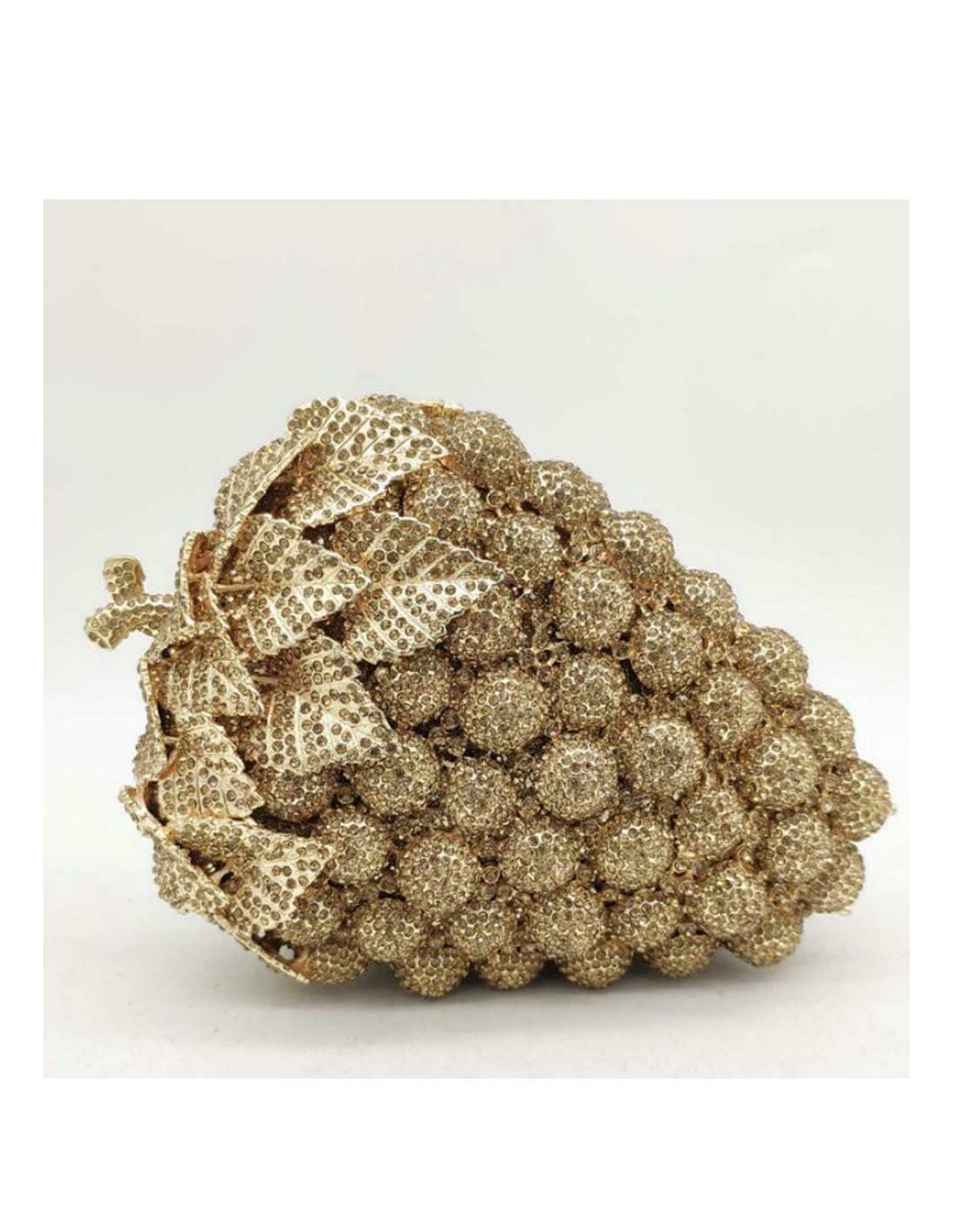 Metal party bag in the shape of a bunch of grapes. Available in several colors.