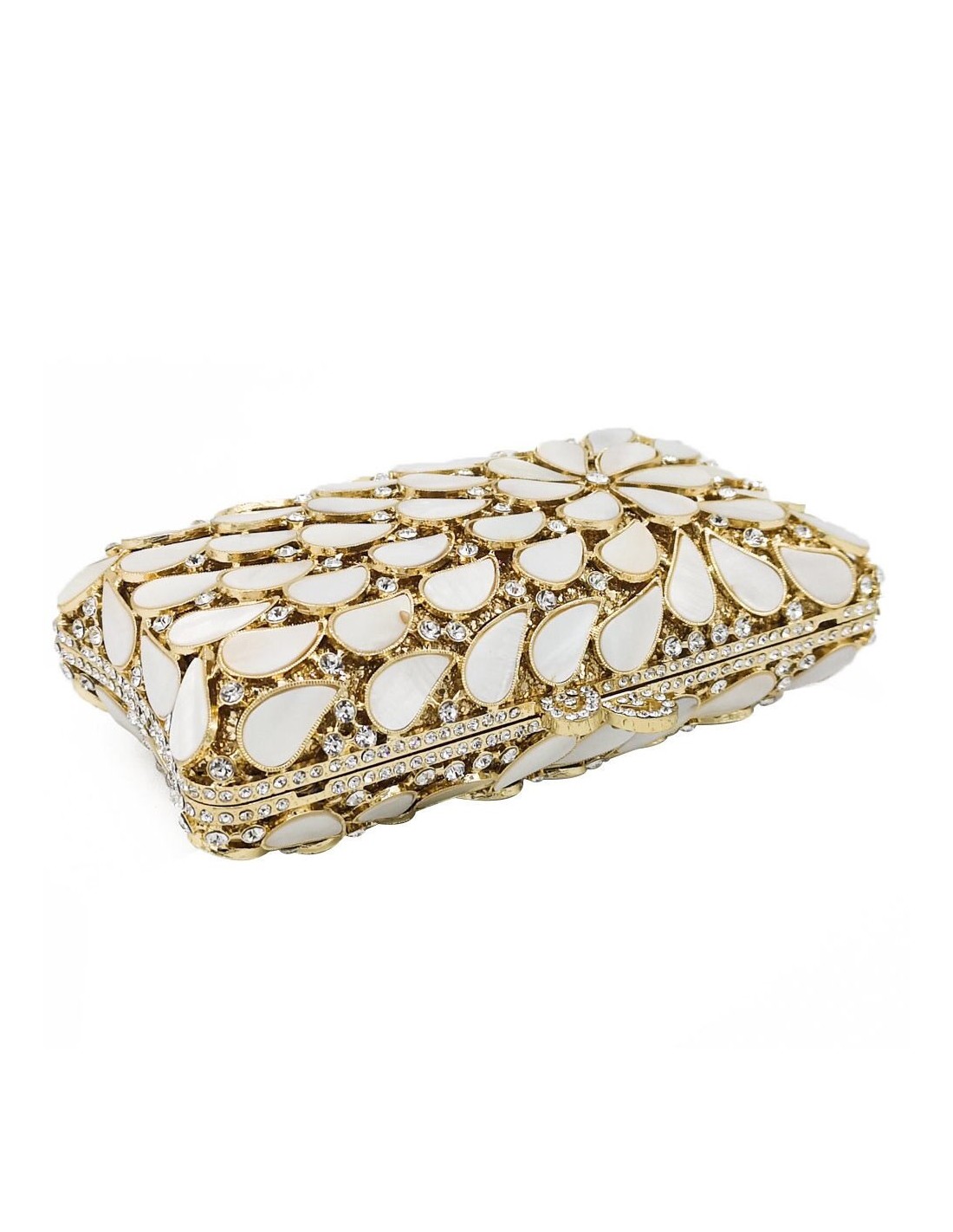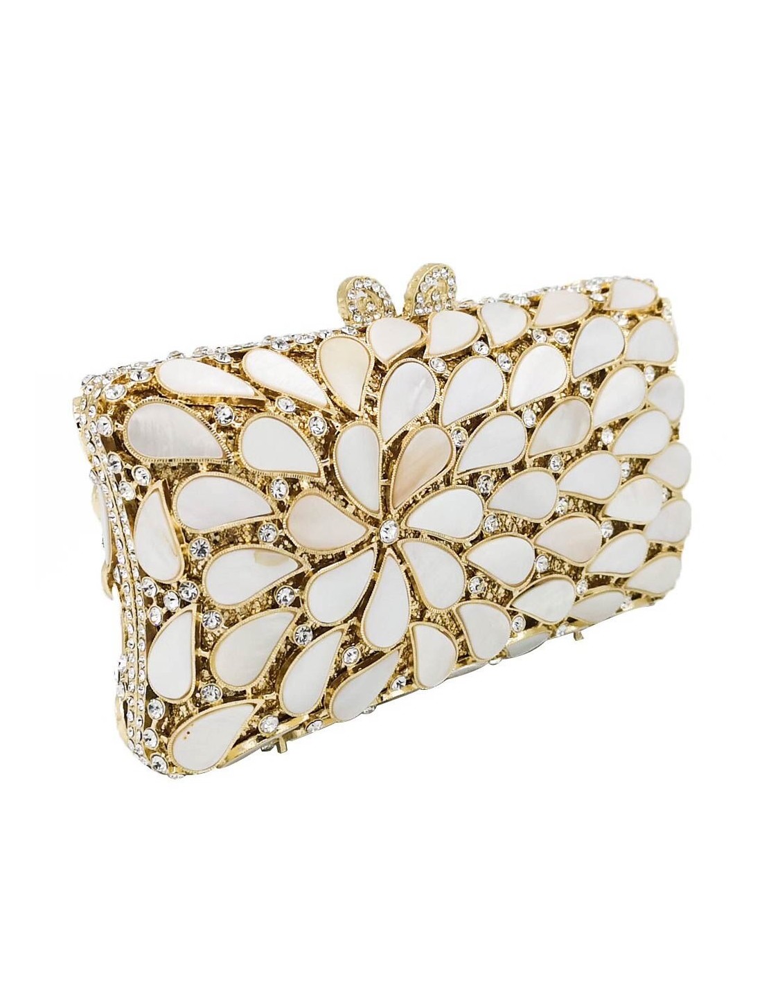 Metal party bag made with crystals and natural shells.