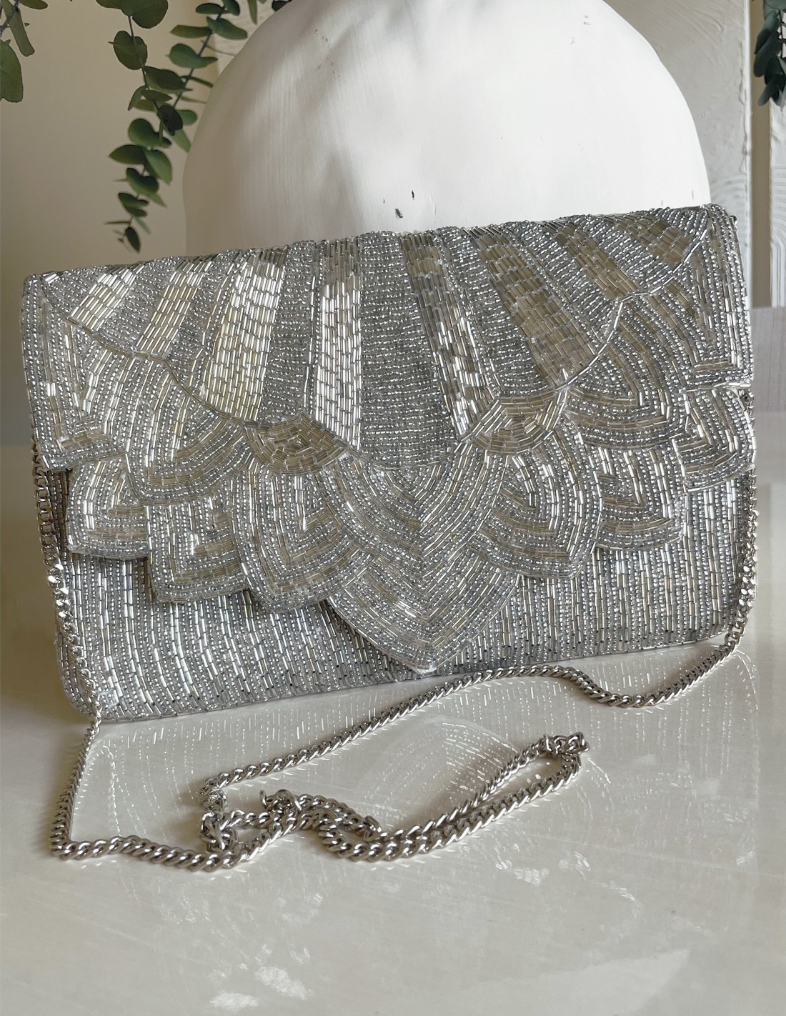 White rhinestone evening clutch for guests
