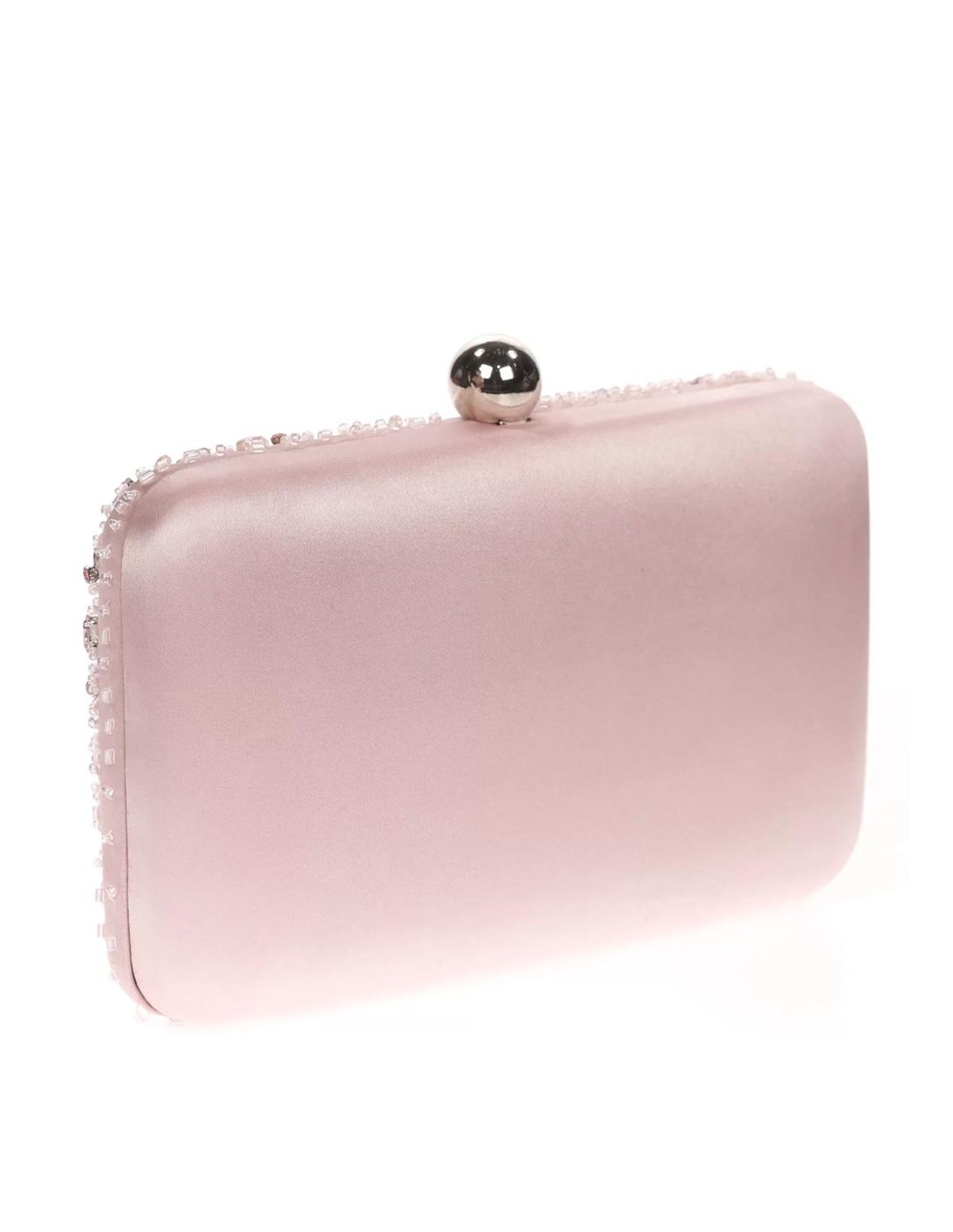 About the satin clutch bag with sewn rhinestones: