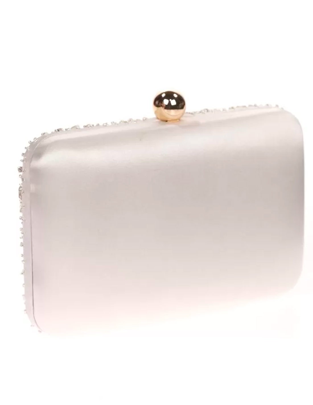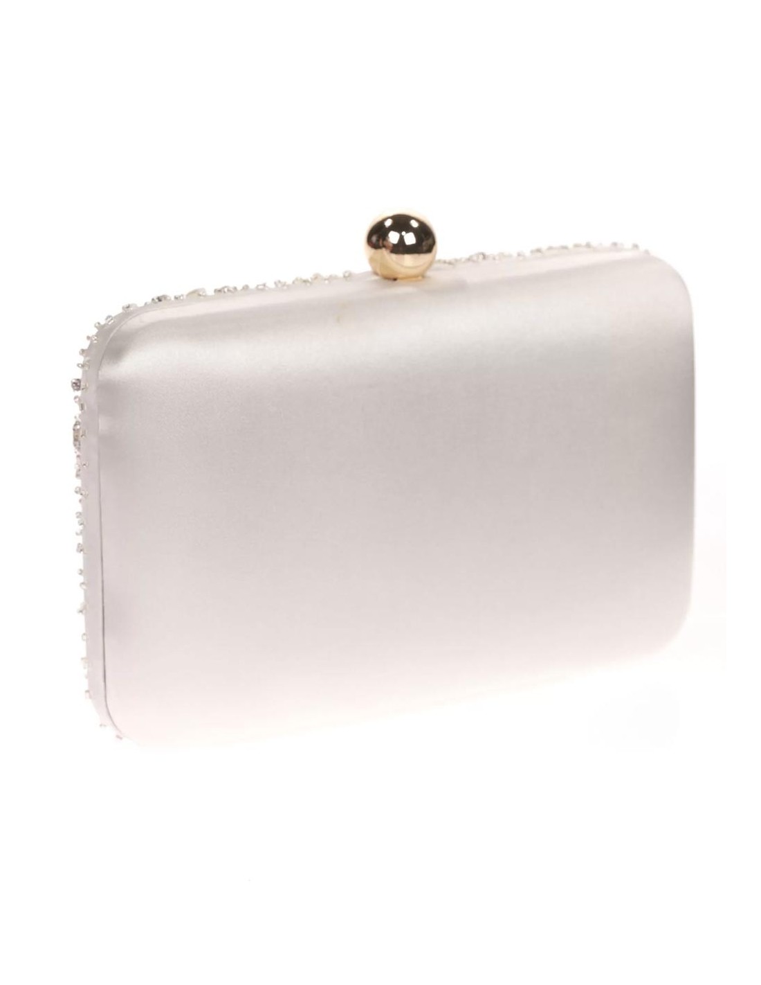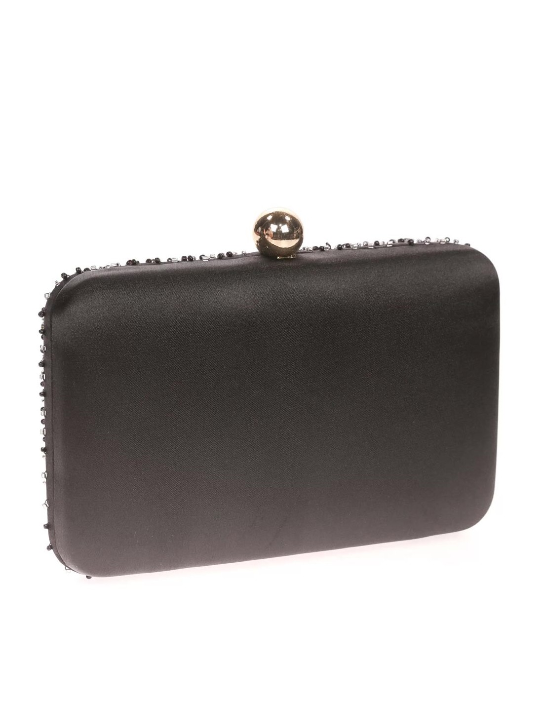 Satin clutch bag with sewn rhinestones