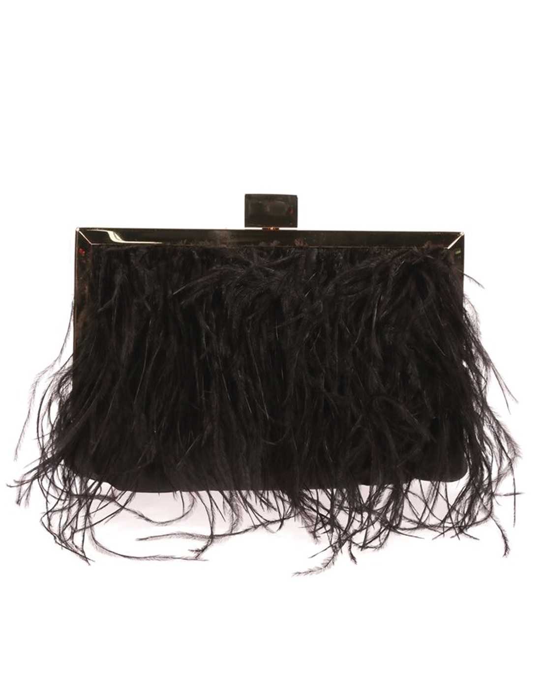 Feather and satin evening clutch bag with gold clasp closure