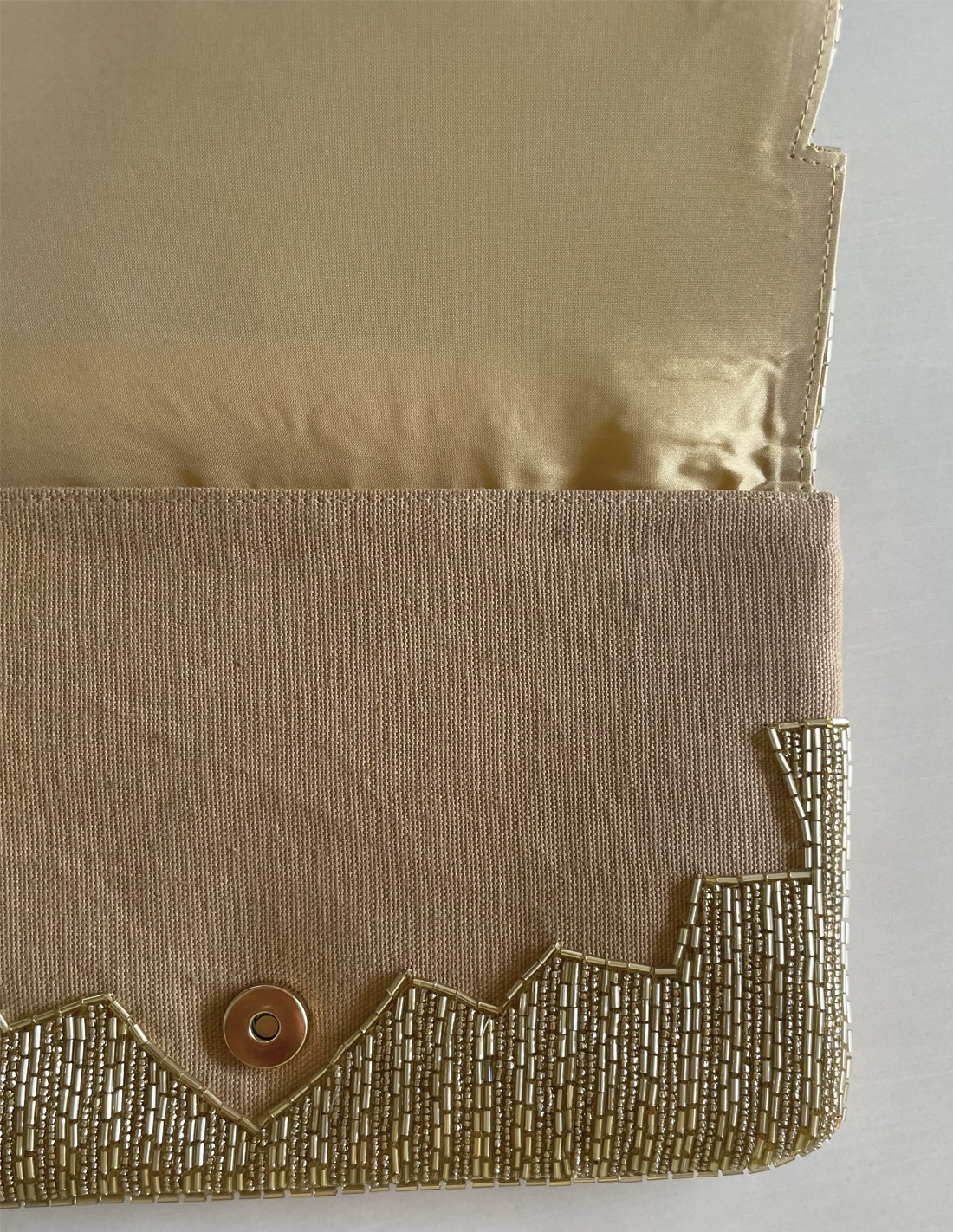 This evening clutch has a small inside pocket and a metallic chain so that you can hang it up if you wish.