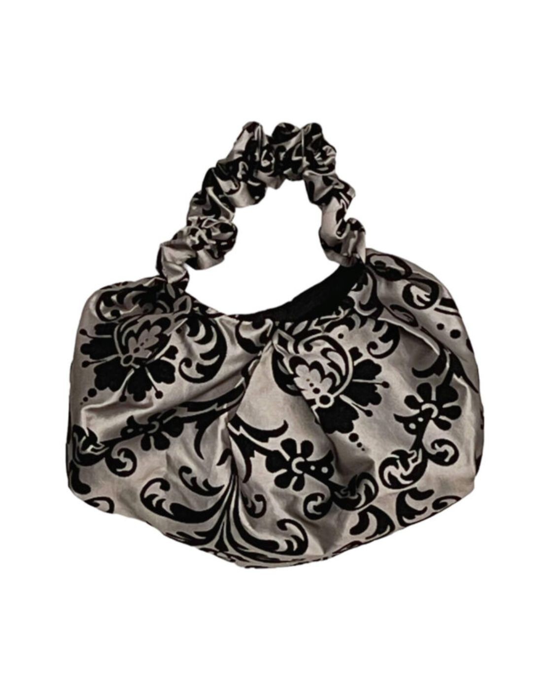 This exclusive brocade taffeta and black velvet handbag is the perfect accessory to elevate your style for special events. Its sophisticated design adds a touch of elegance to any look, whether for weddings, parties or casual chic attire.