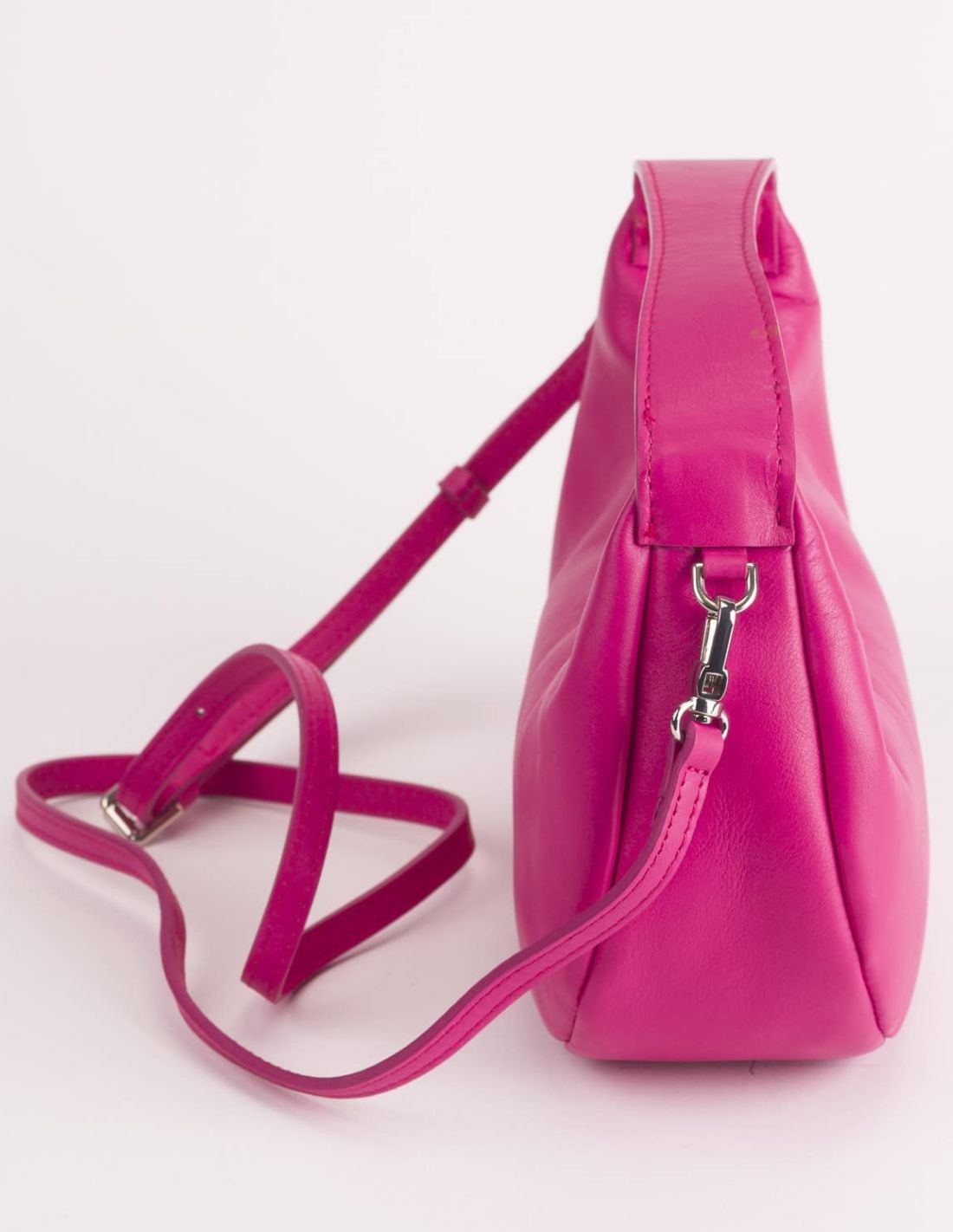 This leather bag in fuchsia color, will be your best ally to carry your essentials for both day to day and for special occasions. A bag with zipper and double handle to place it as desired, and with a very original shape that makes the difference. Handmade in Spain, with durable shine and high quality metallic details.