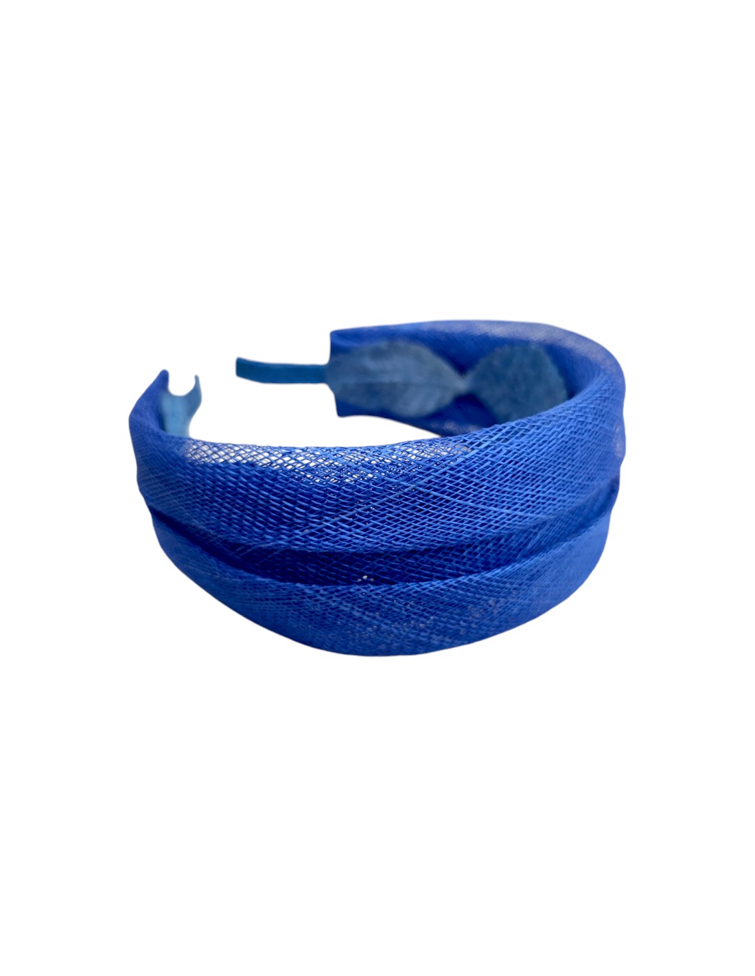 Handmaderaffia headband for guests in blue, an elegant and versatile tone that adds a touch of sophistication to your looks. This accessory, with an approximate width of 4 cm, is ideal for weddings, baptisms and special events. Handmade with high quality materials, its light and comfortable design guarantees a perfect fit.