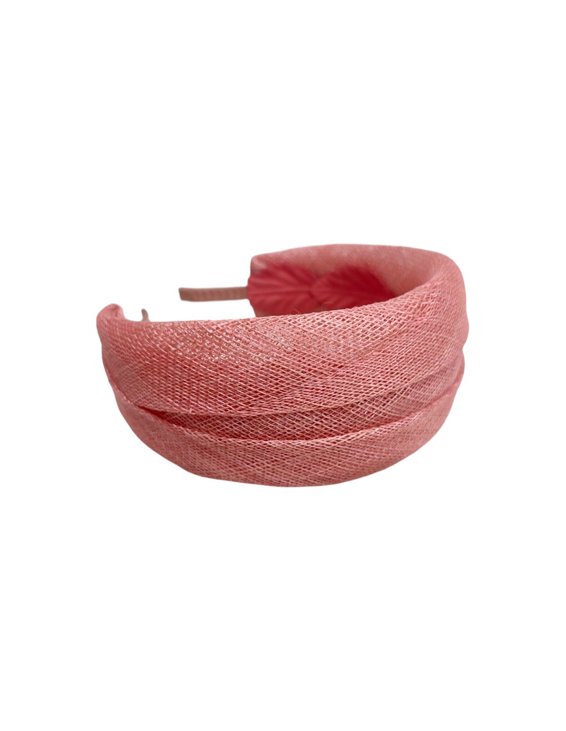 Pink raffia guest headband for special events and everyday looks.