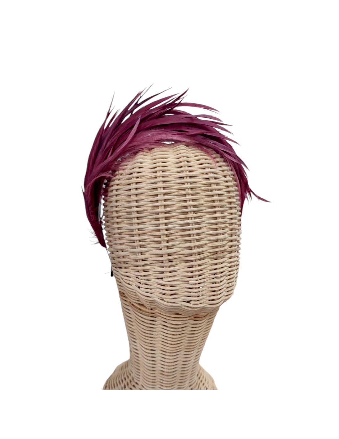 Maroon goose feather headband for special occasions.