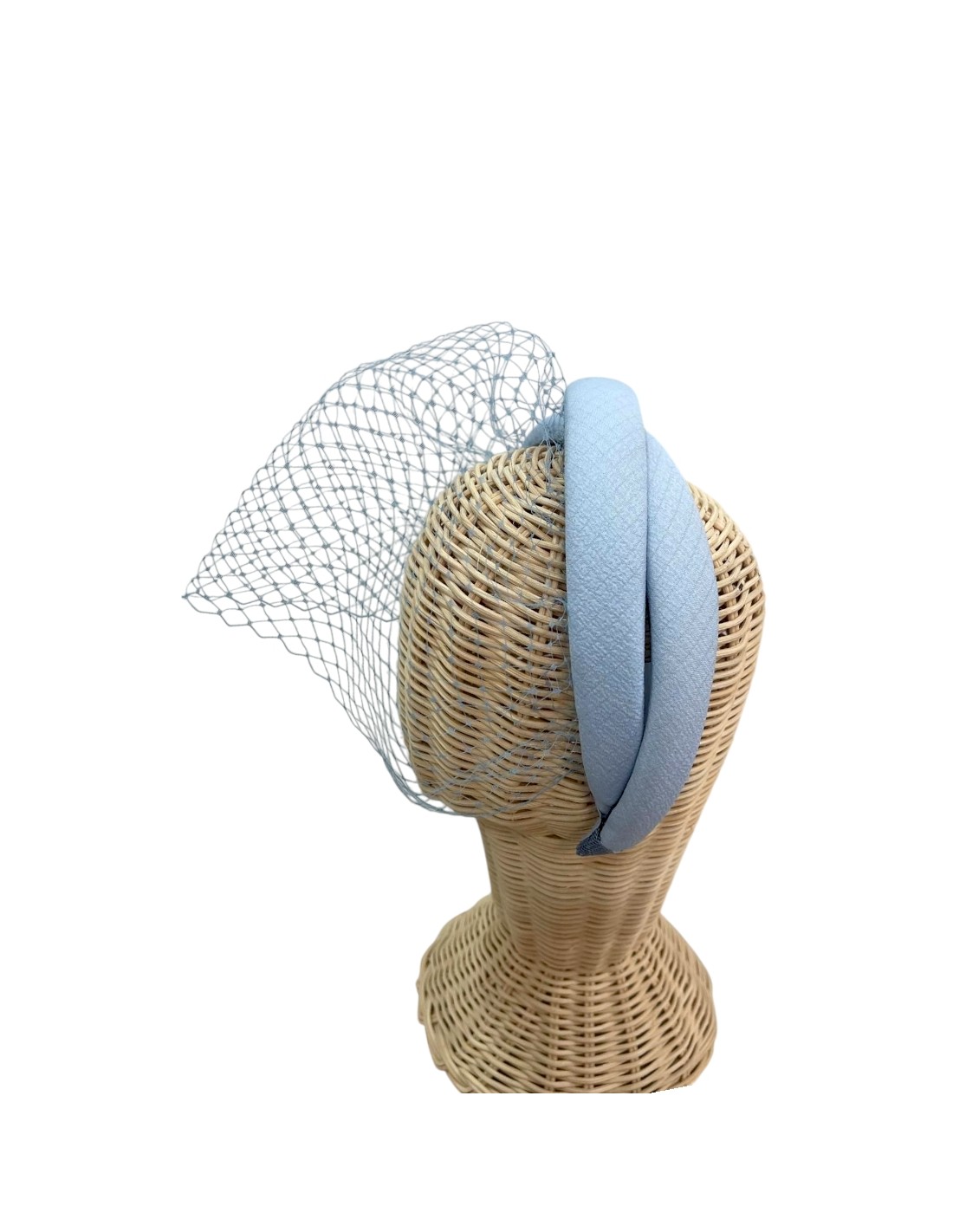 Add a romantic and delicate touch to your look with this light blue double guest headband, complemented with a thin lattice veil of the same color. Handcrafted, this unique 4 cm wide piece combines elegance and contemporary style.