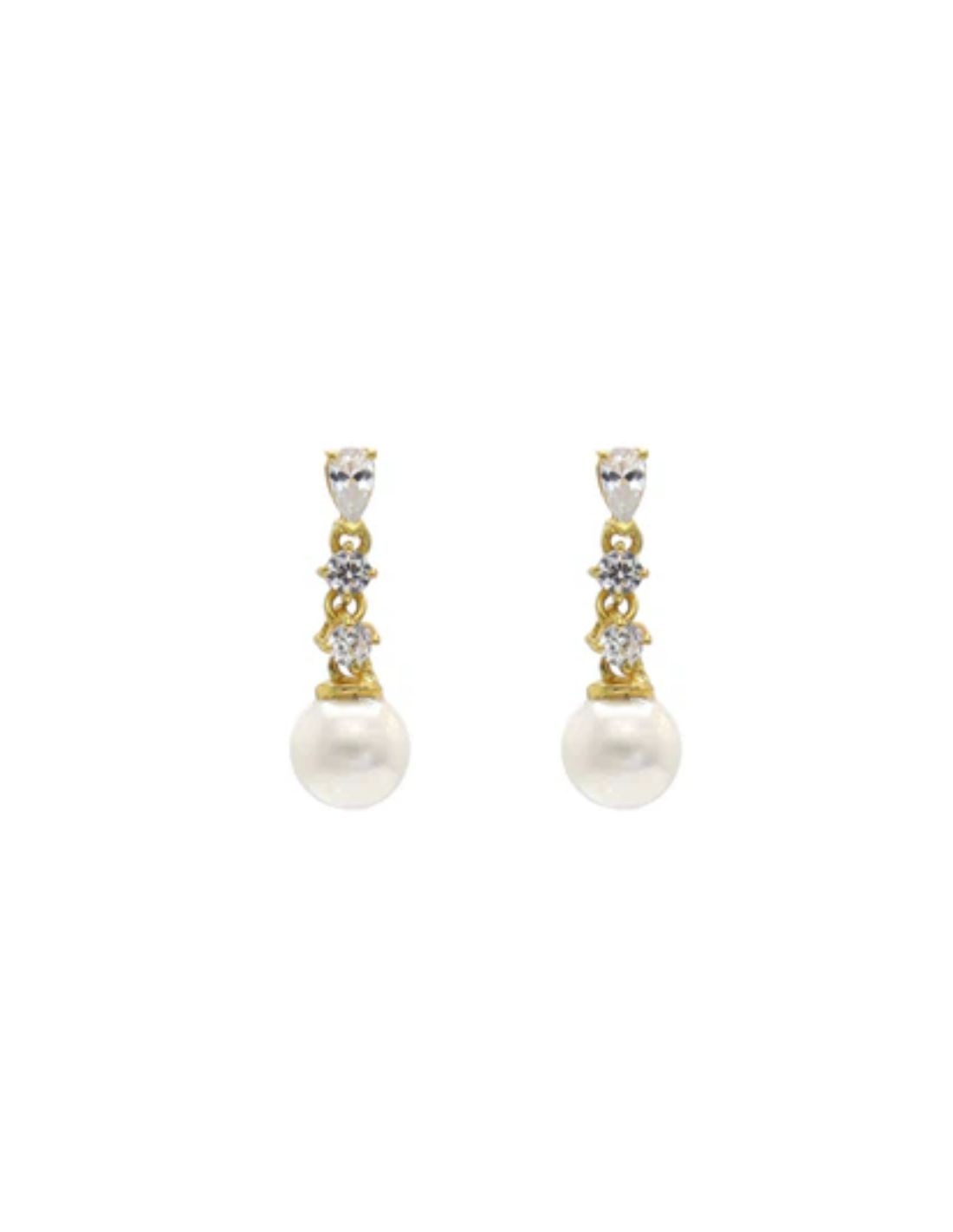 Fine earrings with zirconia and pearl end, a minimalist and elegant design in gold plated brass.