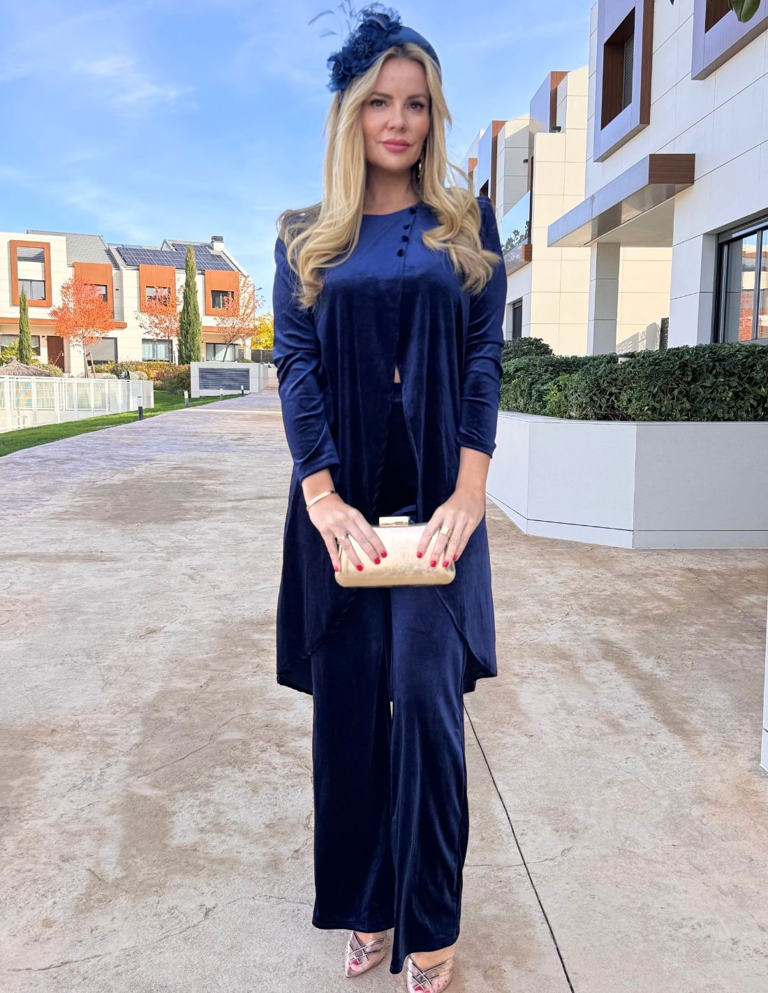 Navy blue velvet ensemble with kaftan and palazzo pants