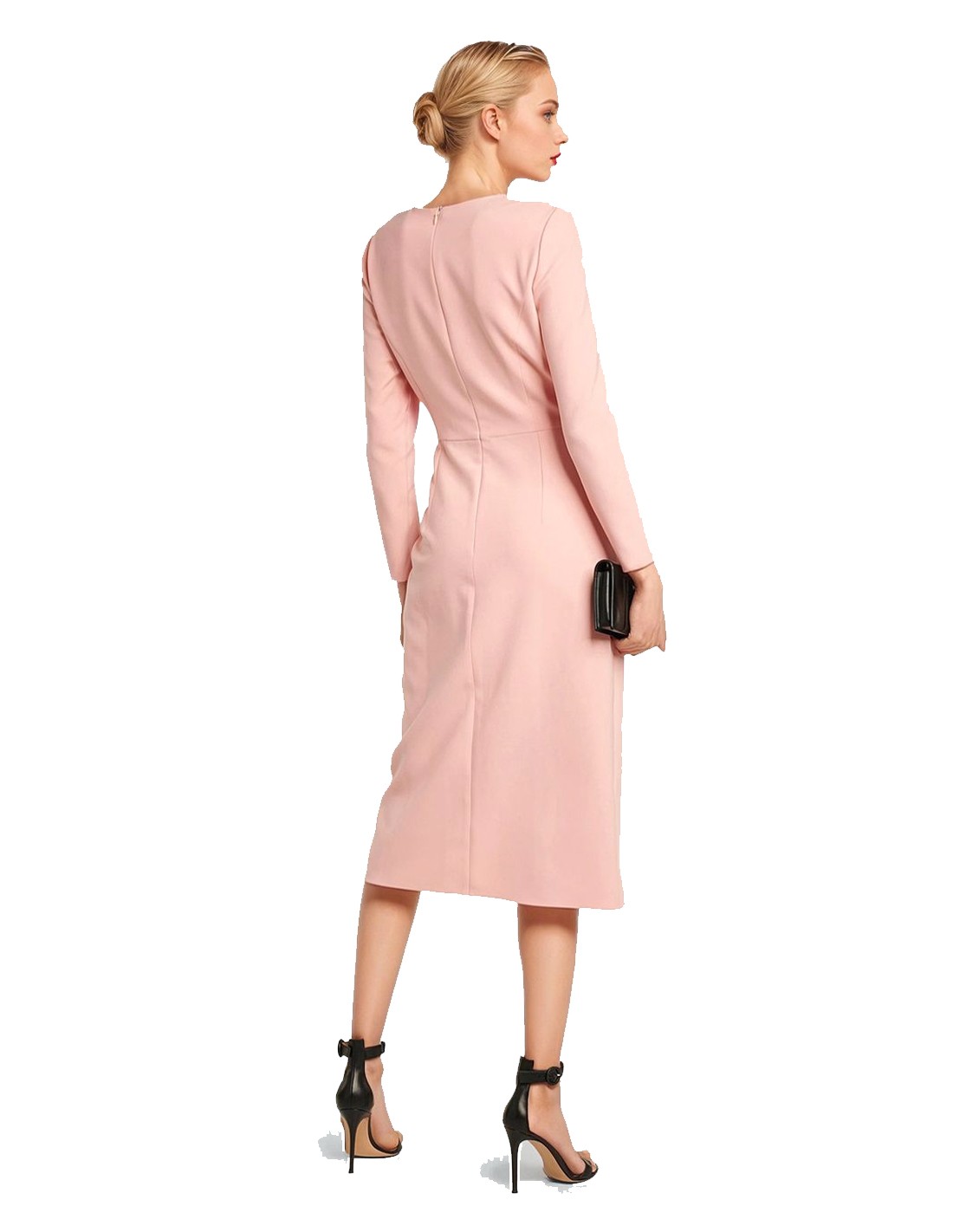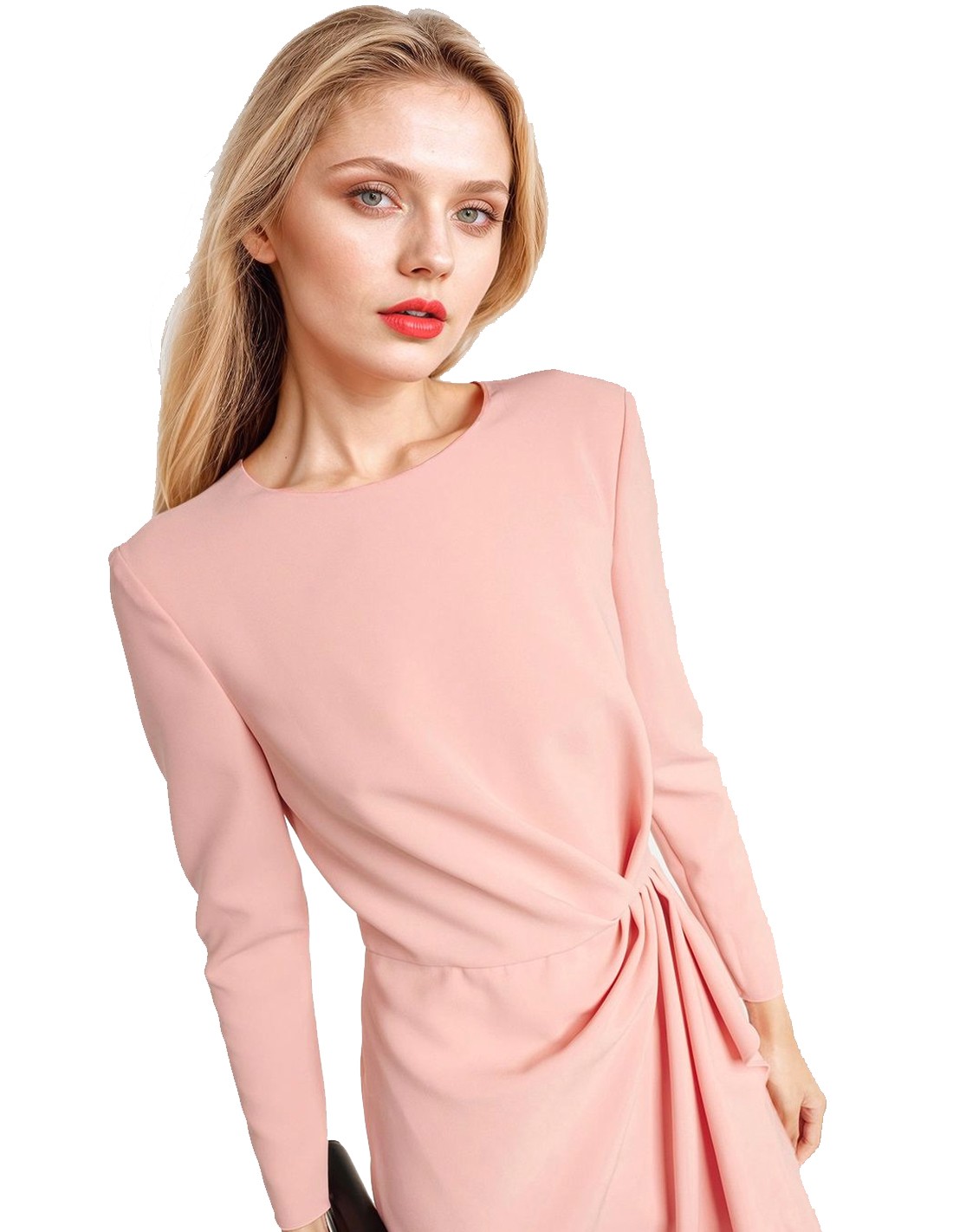 Ideal as a christening mom or communion mom. A special long-sleeved design with cinched waist that favors all body types thanks to its gathered on one side. It gives a very special and authentic touch. In addition, its color is a trend this 2024 and always a hit!