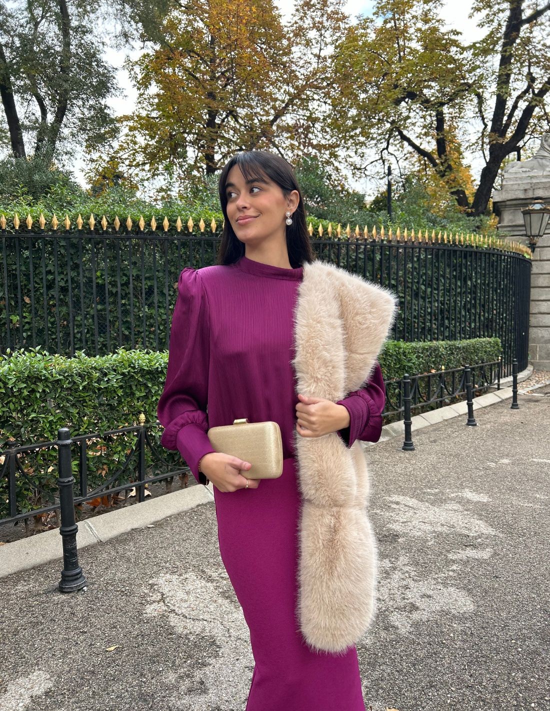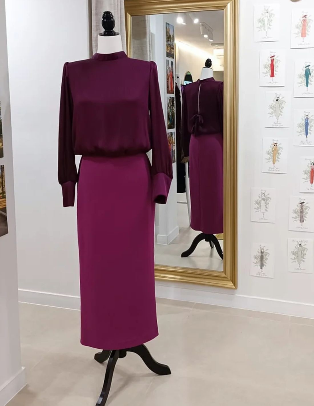 This midi party dress is a super special design to shine in autumn/winter events. Made in two fabrics, with bambula blouse and tube skirt in elastic knit. It incorporates a cut to the waist, open back with adjustable lacing and closed front neckline. Its bougainvillea color is perfect to combine with all kinds of accessories, timeless and elegant.