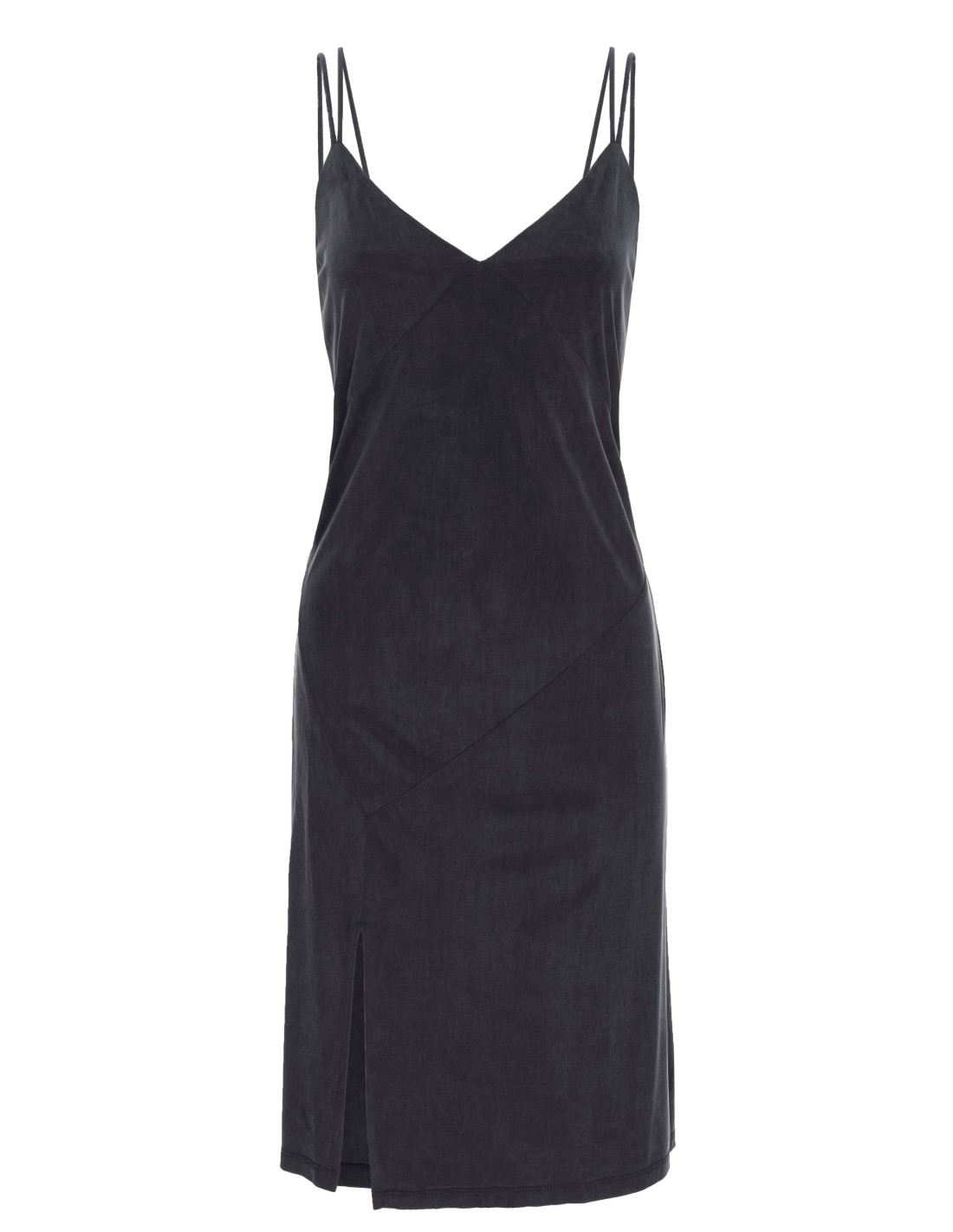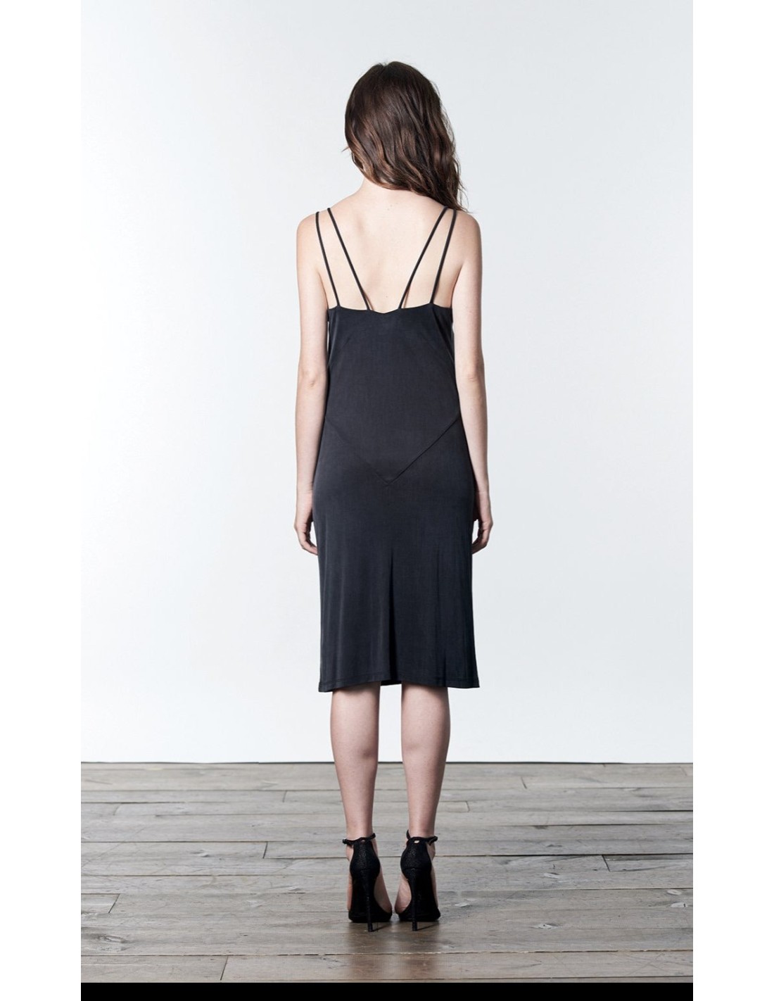 Black midi dress with double straps and side slit