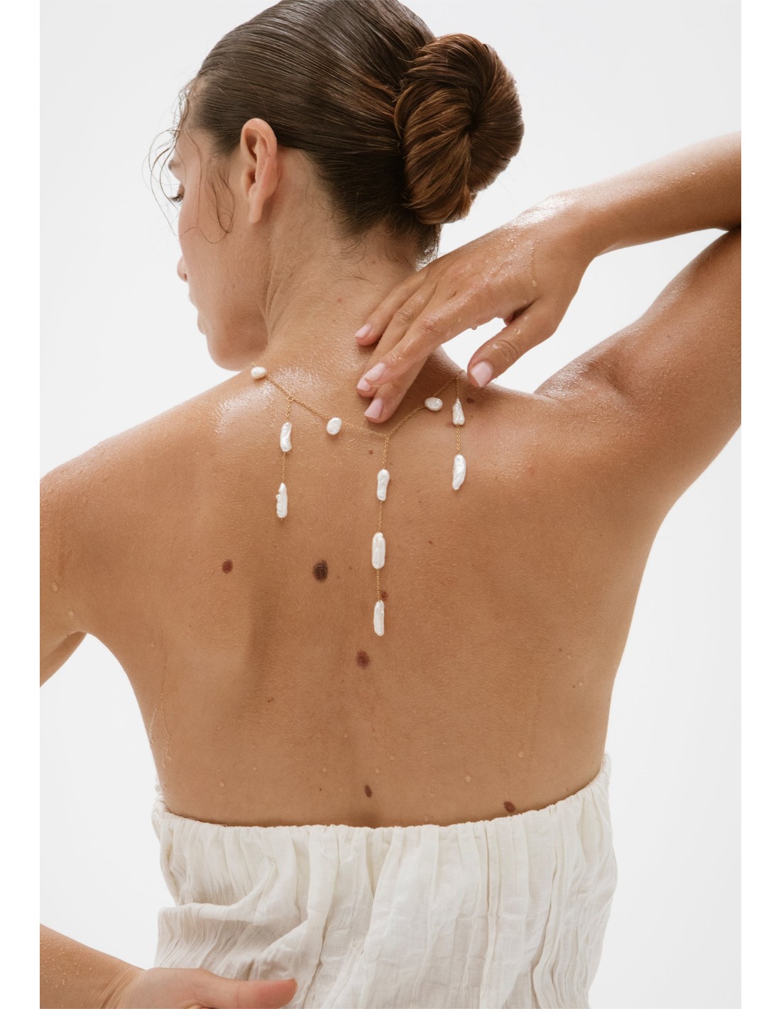 If you are looking for a simple and elegant accessory to complete your look and make a difference, this gold necklace is an ideal choice. A golden necklace with an elegant structure with pendants from which dangle freshwater pearls in a delicate way. Its sophisticated design makes it the ideal accessory for that guest who is looking for something that makes her stand out or even for brides who want an accessory that complements her dress.