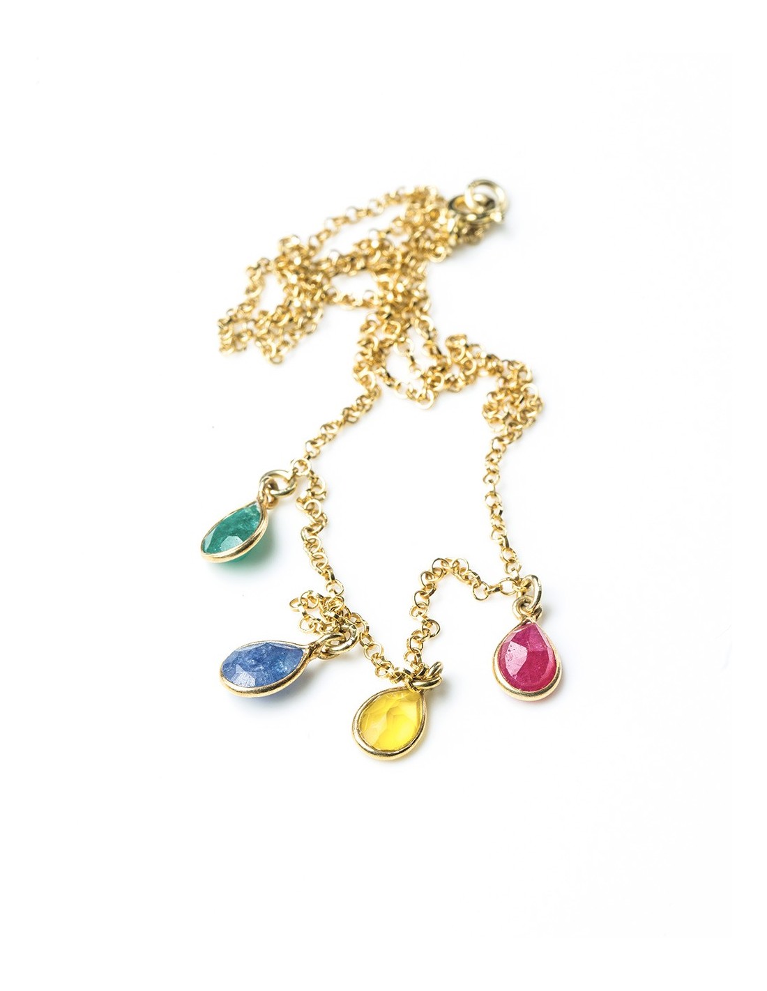 Golden necklace with rainbow stones by Eme Jewels at INVITADISIMA.