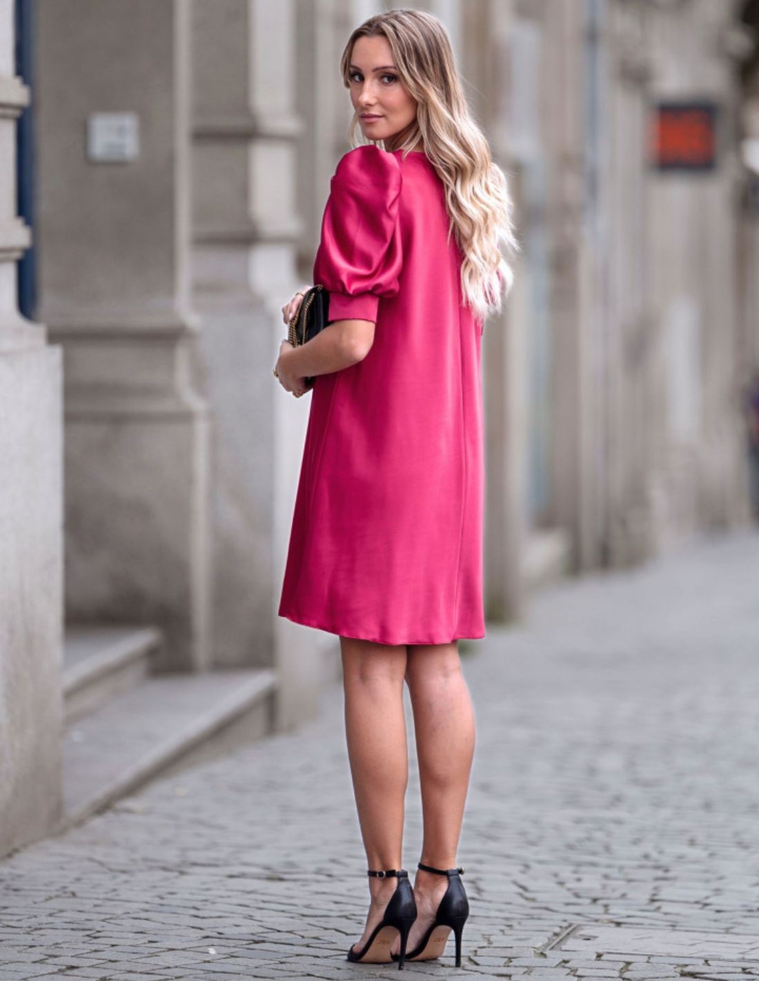 If you are of cheerful colors and bet on short dresses, this short cherry dress with gathered sleeves is perfect for you. In cherry red color, with short sleeves with gathered detail and round neckline. Ideal for any casual event or even for everyday wear.