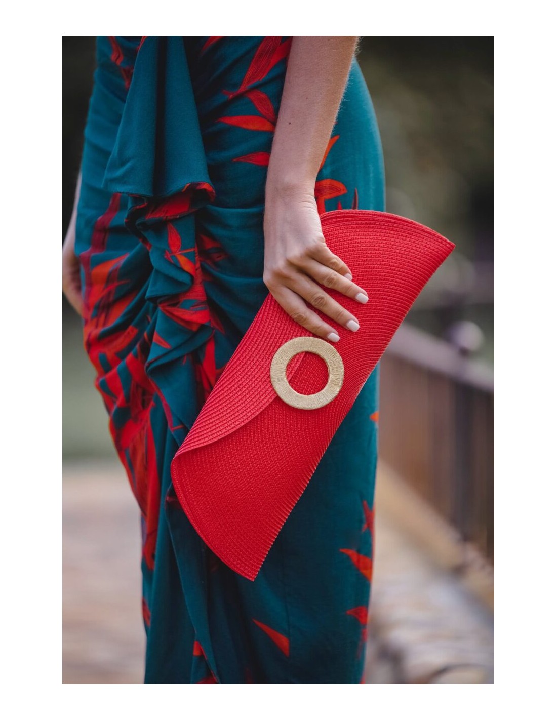 Its design is highlighted by a carefully crafted African bronze piece, providing a unique and distinctive touch. The synthetic raffia guarantees durability and lightness, making it the ideal accessory for special events, summer looks or even to give a bohemian and refined air to your everyday life.