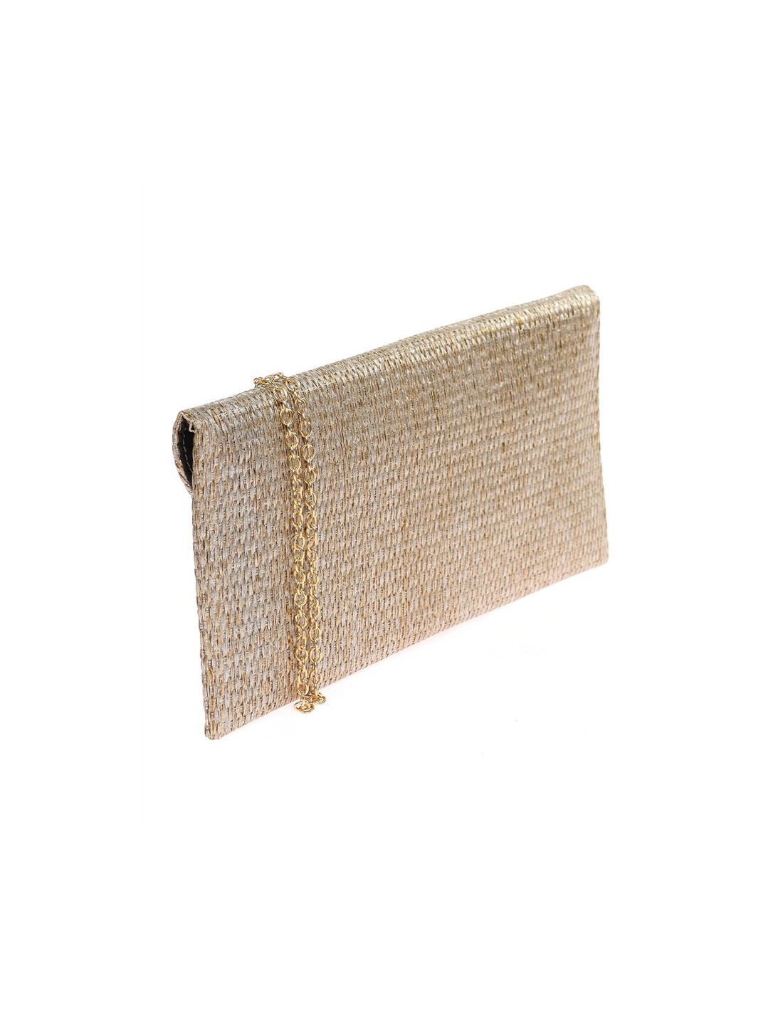 Discover the perfect accessory for your special events with this raffia-effect party bag. Its sophisticated rectangular design adds a touch of distinction to any guest's look, while its chain shoulder strap adds an elegant and versatile touch.