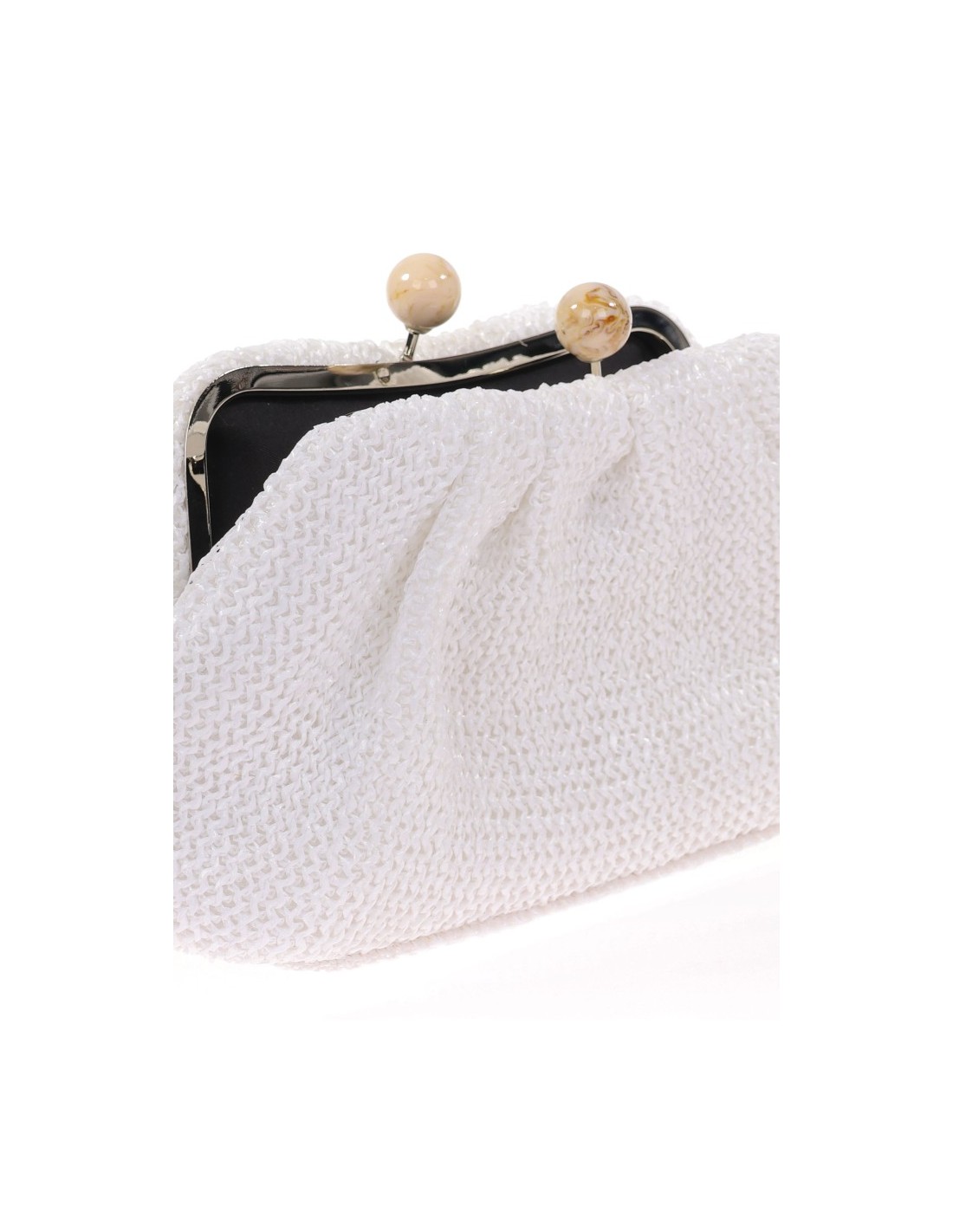 Raffia clutch bag with tassel closure