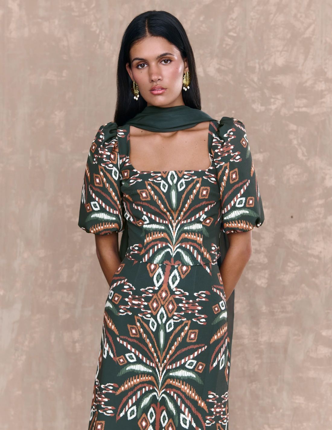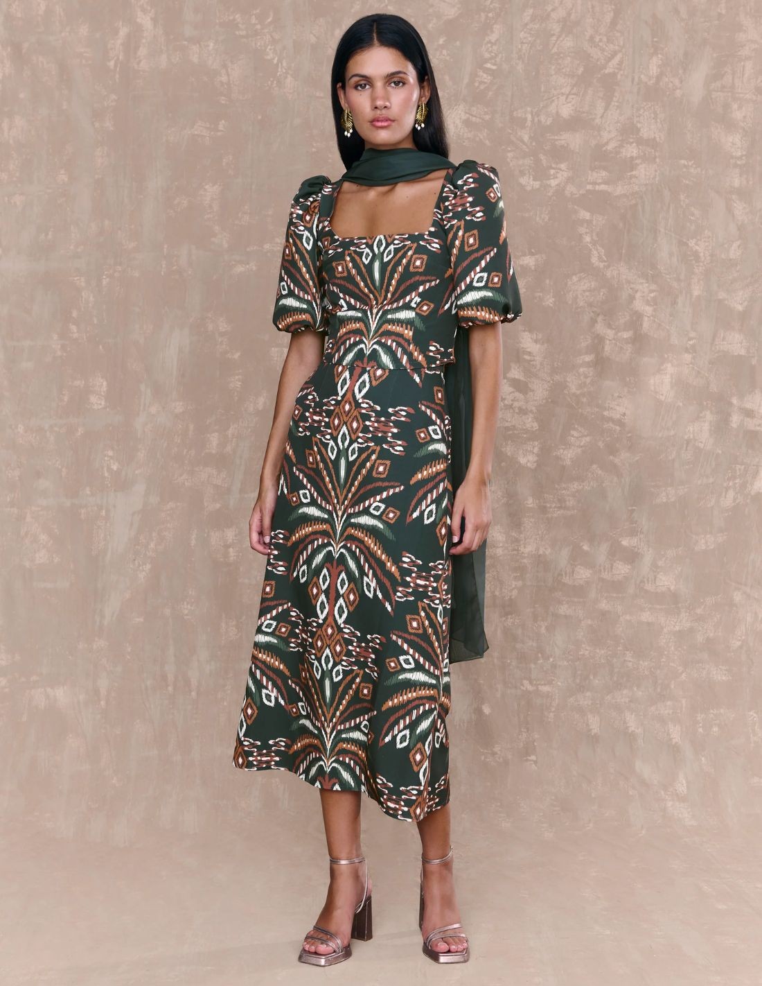 If you are one of those guests who like to elevate your look to the maximum, this chiffon shawl is the perfect complement. A delicate, light and flowing chiffon shawl in dark green, with a minimalist design that allows you to adapt it according to your style. Pair it with both event and casual looks.