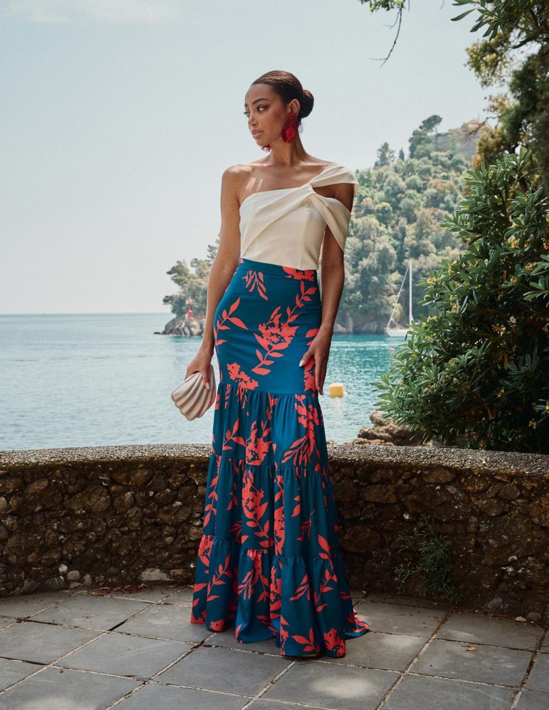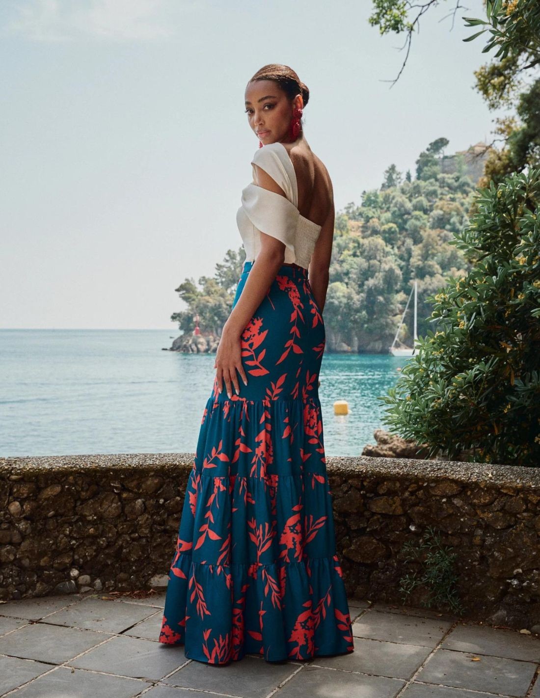 The ruffled back makes it a comfortable garment that combined with the long printed skirt, forms a 10 style.