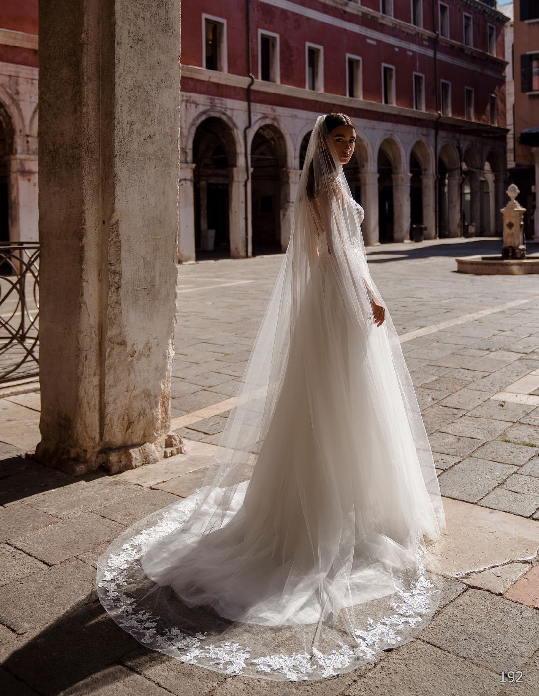 Long wedding dress in tulle with tattoo effect bodice