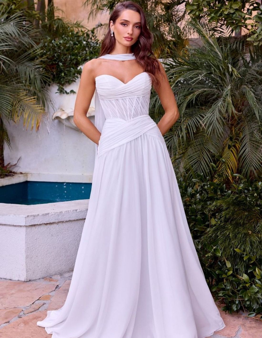 Design: Structured bodice and chiffon shawl