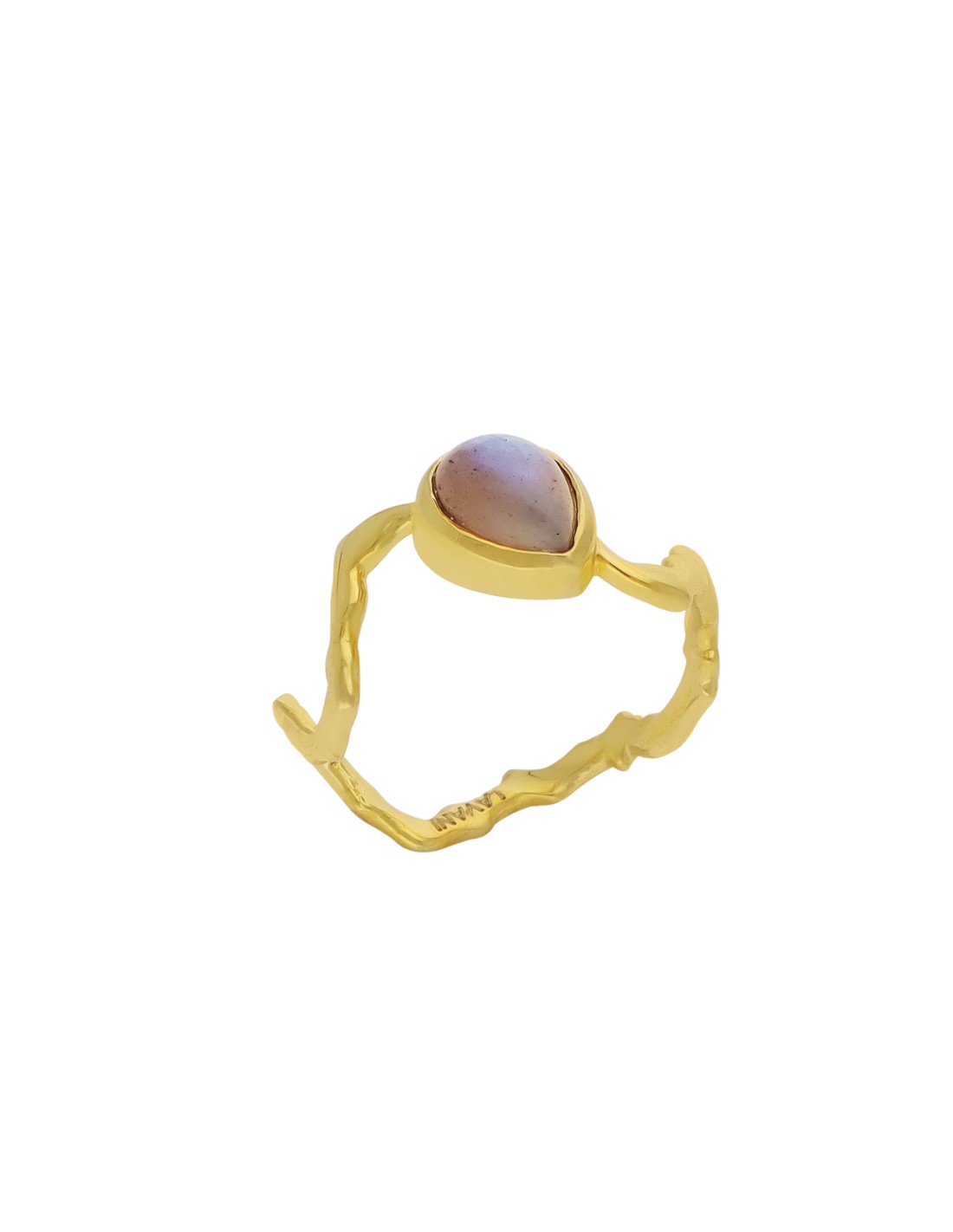 Este anillo dorado se convertirá en tu pieza favorita para combinar con tus looks de evento pero también los más casuales. Incorpora una piedra preciosa color gris, la labradorita. Versátil y original para darle ese toque a tus estilismos.