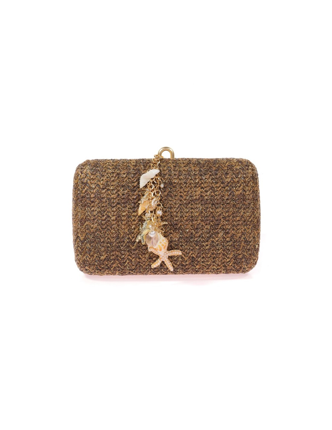 Bolso de fiesta de rafia con pequeñas conchitas y caracolas