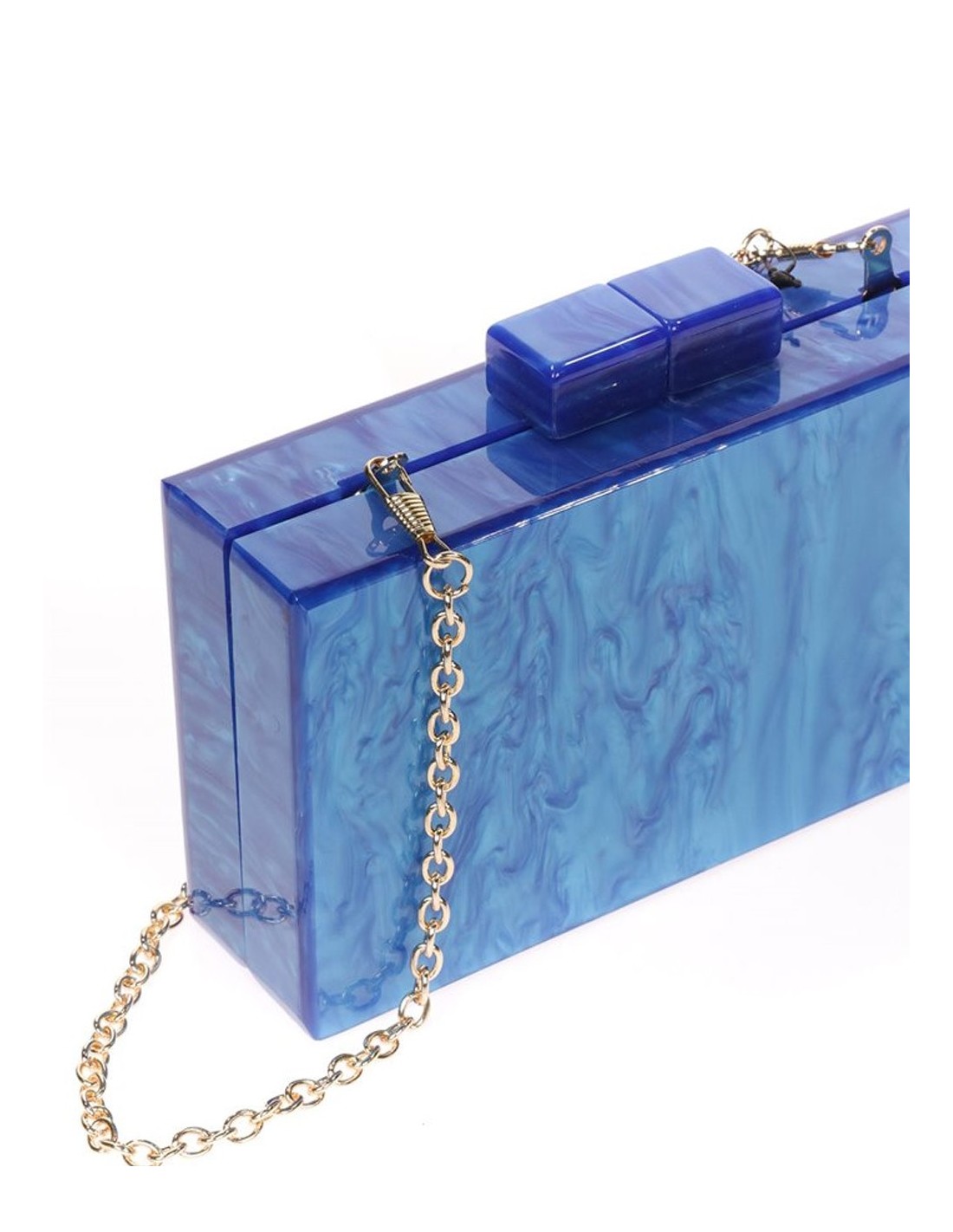 Bolso de fiesta nacarado en color azulón con cierre mediante un potente imán.